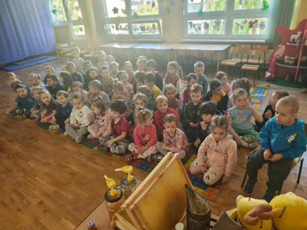 27 kwietnia 2026 r. dzieci ze wszystkich grup przedszkolnych uczestniczyły w warsztatach pszczelarskich. Zajęcia poprowadził pan Tomasz Dyraga - ...