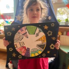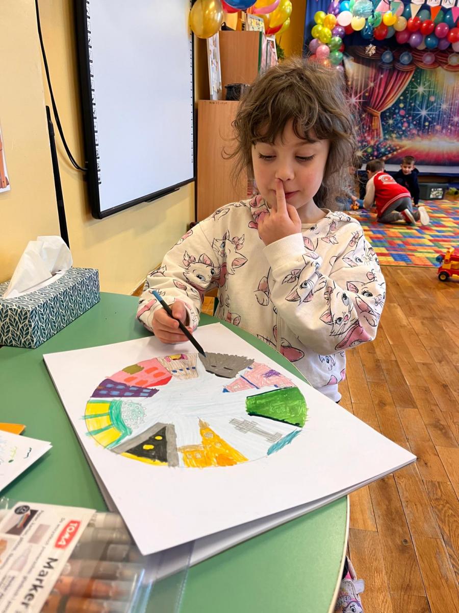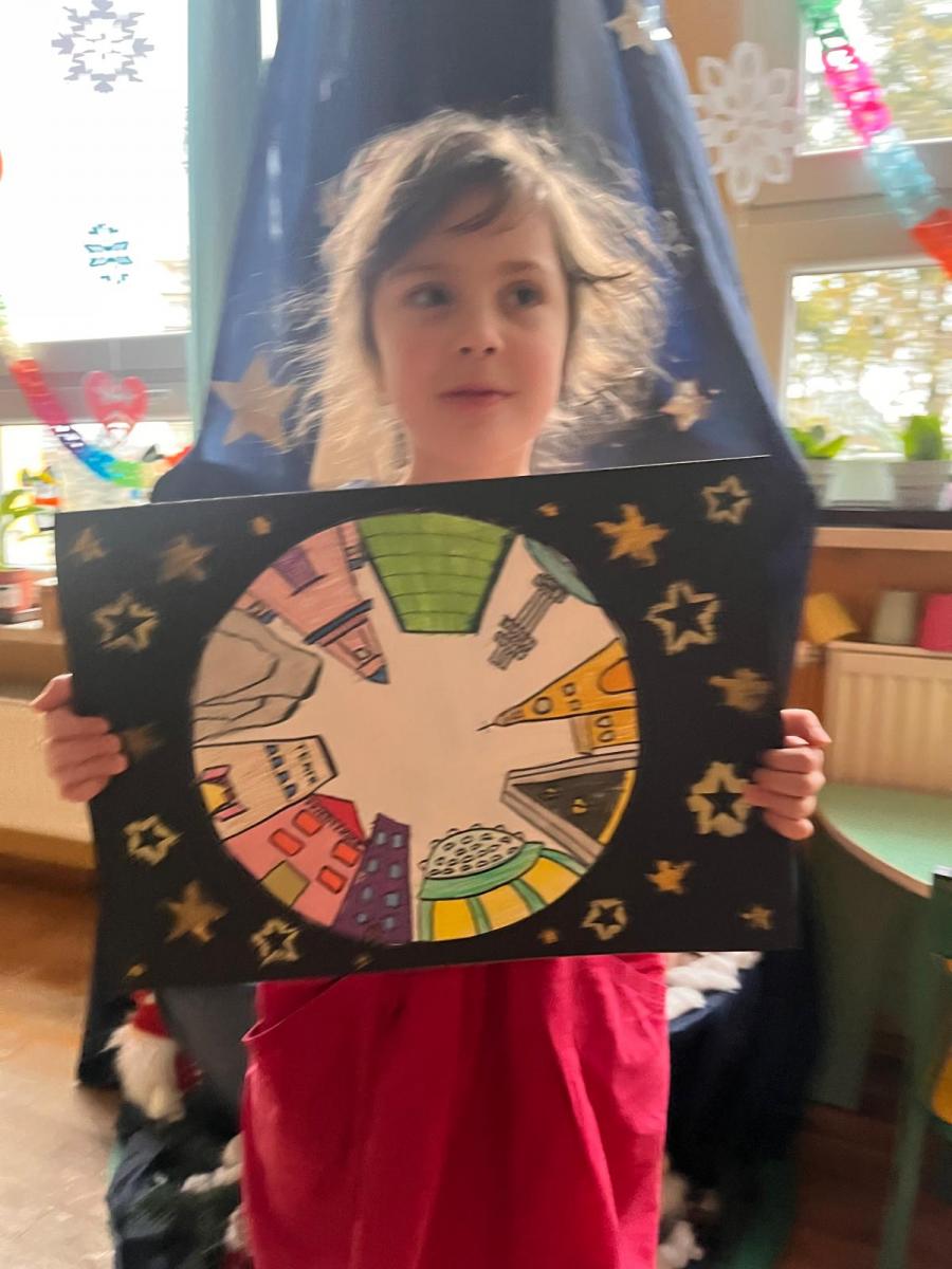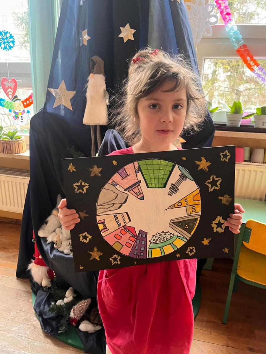 Z przyjemnością informujemy, że Ania Krupnik z grupy V „Sówki” wzięła udział w konkursie plastycznym „Kielce – moje miasto w 2026 roku”. Celem konkursu było zachęcenie do czynnego zainteresowania się tematem rozwoju miasta Kielce.