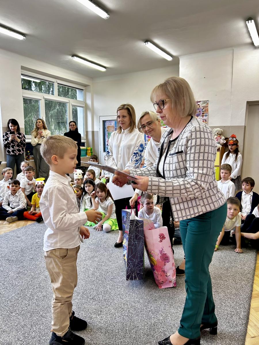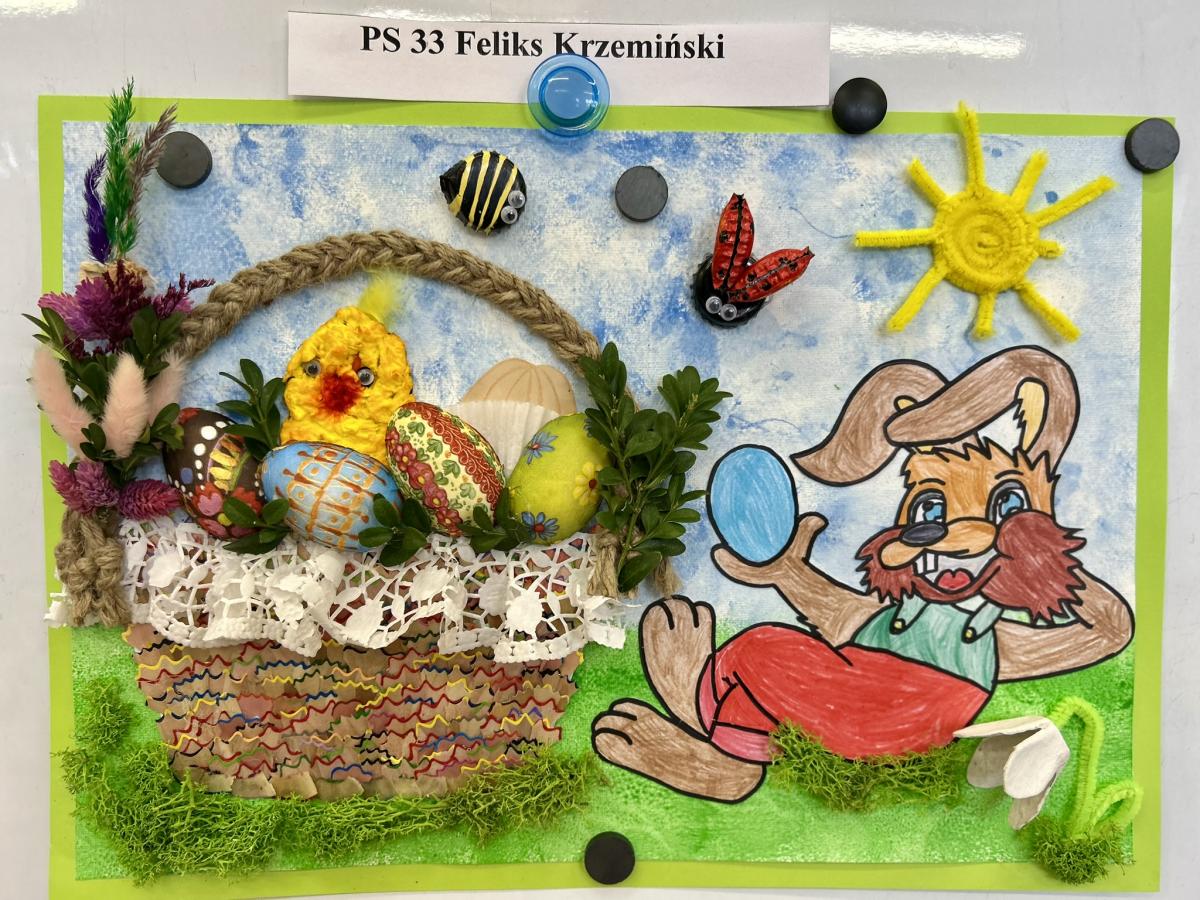 Miło nam poinformować, że Feliks K. z najstarszej grupy "Sówki" zajął I miejsce w Międzyprzedszkolnym Konkursie Plastycznym "Wielkanocne inspiracje", organizowanym przez Przedszkole Samorządowe nr 31 w Kielcach. Celem konkursu było rozwijanie kreatywności i zdolności plastycznych, kultywowanie tradycji oraz zwyczajów wielkanocnych, pogłębianie wiedzy na temat symboliki Świąt Wielkanocnych, a także kształtowanie postaw proekologicznych.