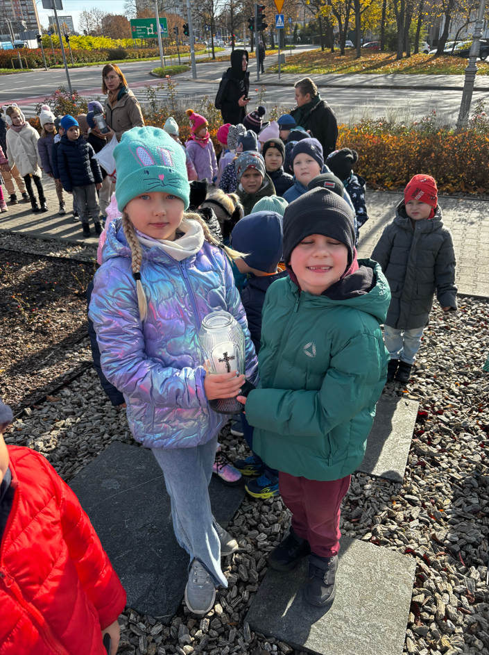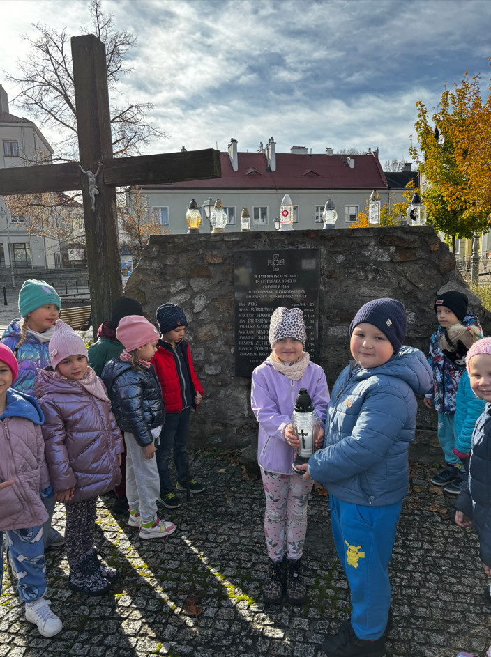 Dwie najstarsze grupy z naszego przedszkola: "Sówki" i "Biedronki" przystąpiły do powyższej akcji, wybierając się pod pomnik Wincentego Witosa - zwanego "apostołem polskiej wolności" oraz pod pomnik Bojowników Polski Podziemnej, gdzie zapaliły znicze. Była to okazja, aby przekazać dzieciom 5 i 6-letnim choć cząstkę polskiej obyczajowości, jaką jest pamięć o zmarłych - tych najbliższych i tych, na grobach których nikt od dawna nie zapalił symbolicznego światełka.