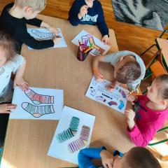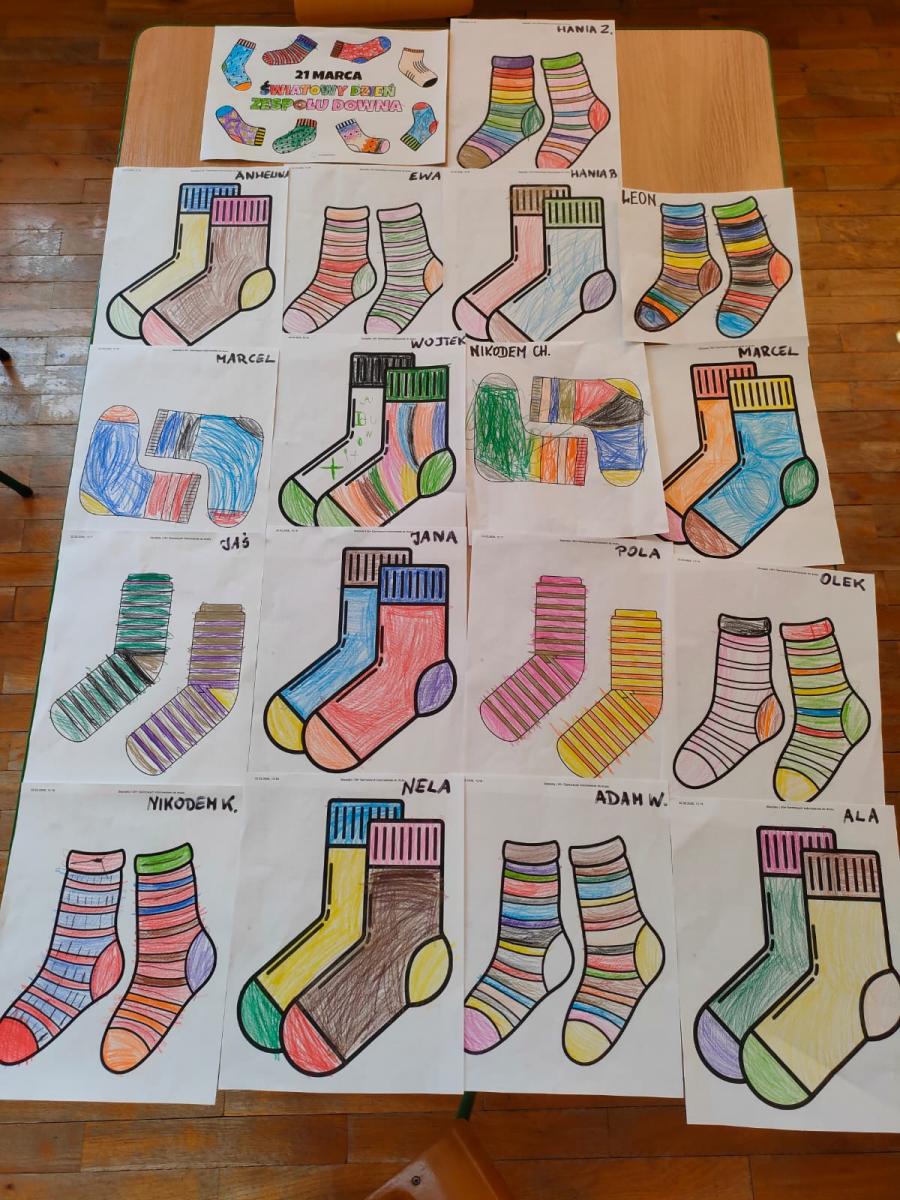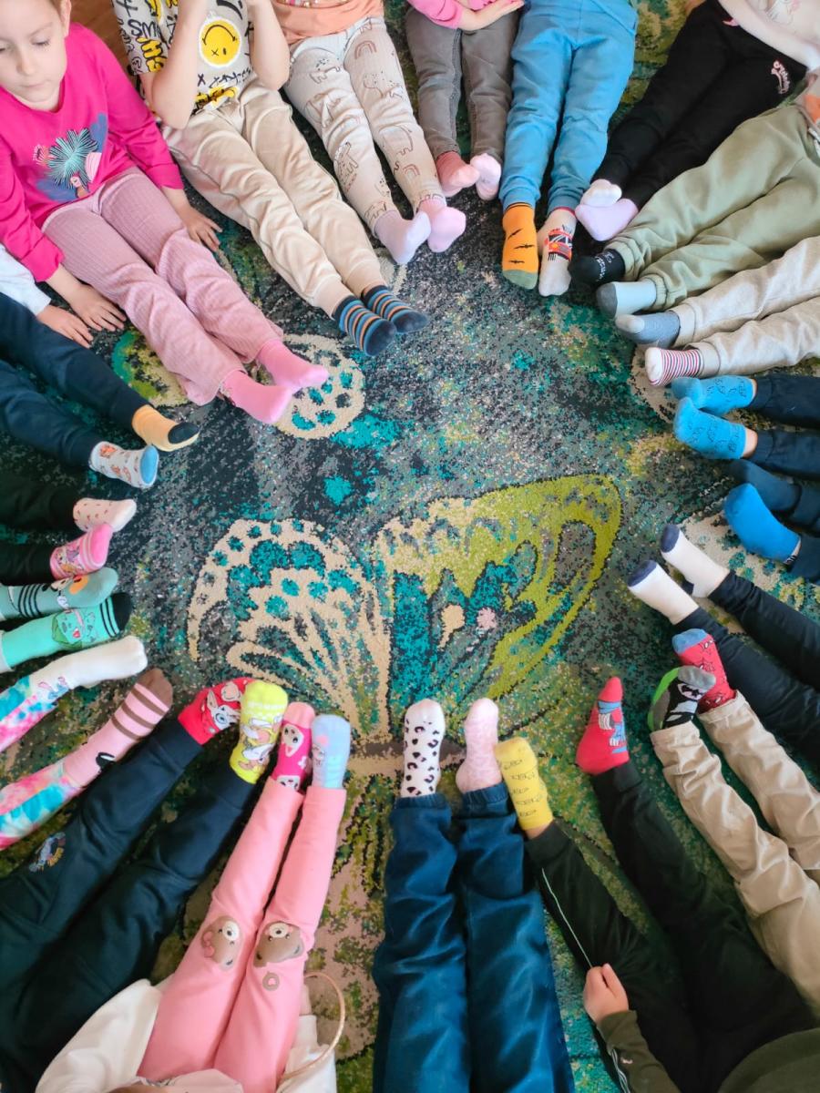 Jak co roku, nasze przedszkolaki czynnie włączyły się w obchody Dnia Kolorowej Skarpetki. Data 21 marca nie jest przypadkowa – nawiązuje do dodatkowego, trzeciego chromosomu w 21. parze, który powoduje zespół Downa. Kolorowe skarpetki stały się globalnym symbolem tego dnia. Ich różnorodne wzory i odcienie podkreślają, że każdy z nas jest wyjątkowy. Poprzez obchody Dnia Kolorowej Skarpetki zwiększaliśmy świadomość dzieci na temat życia osób z Zespołem Downa. Łamaliśmy stereotypy, promując postawy otwartości i szacunku. Okazywaliśmy wsparcie rodzin poprzez pokazanie, że osoby z trisomią 21 mogą prowadzić satysfakcjonujące życie. Każda grupa zaprojektowała swoje skarpetki, które można oglądać na tablicach.