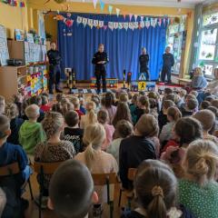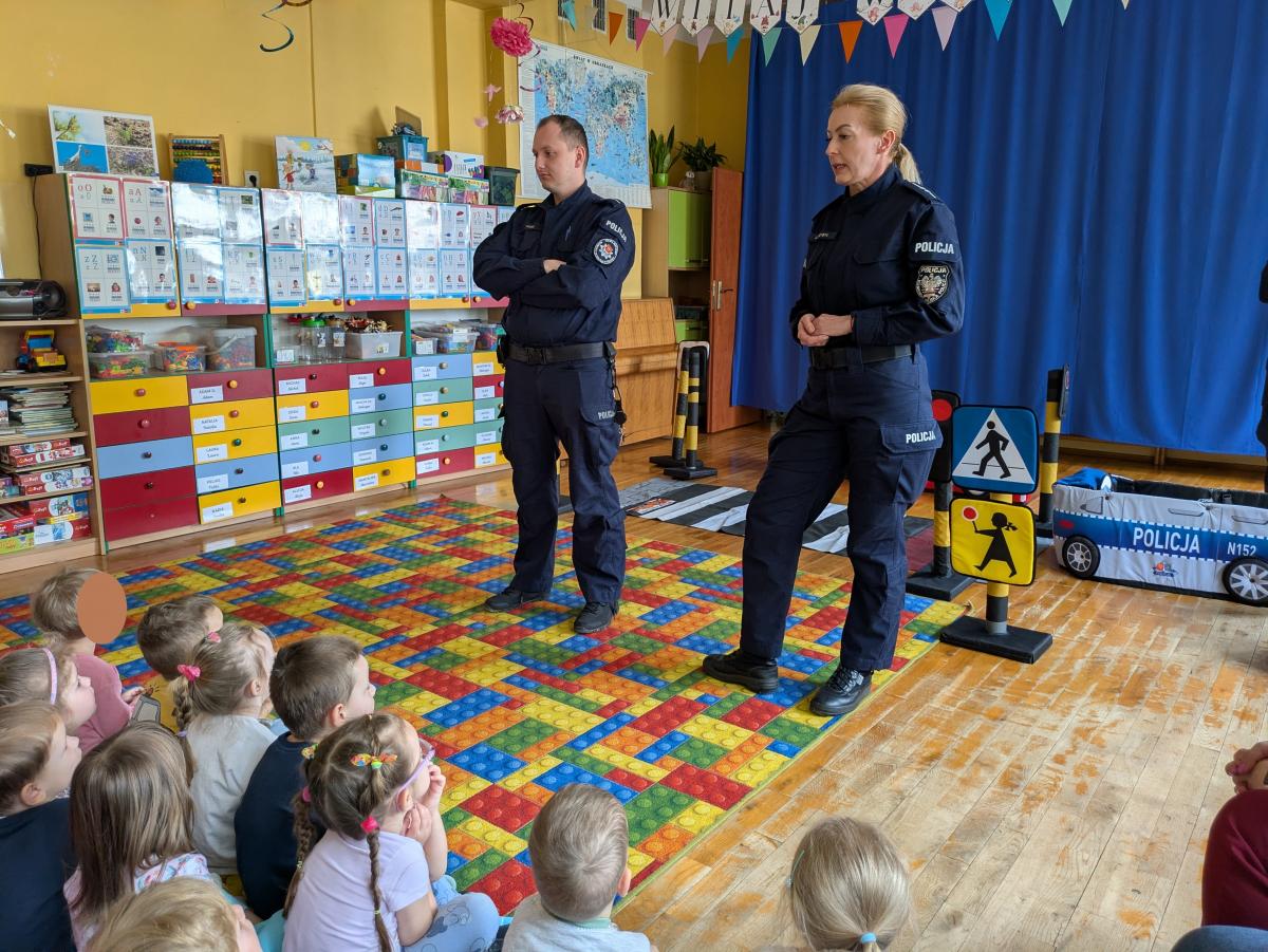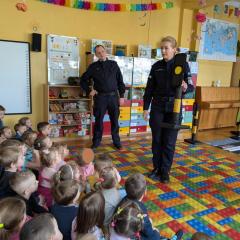 Serdecznie dziękujemy funkcjonariuszom policji za ciekawą prelekcję i przybliżenie dzieciom zawodu policjanta.