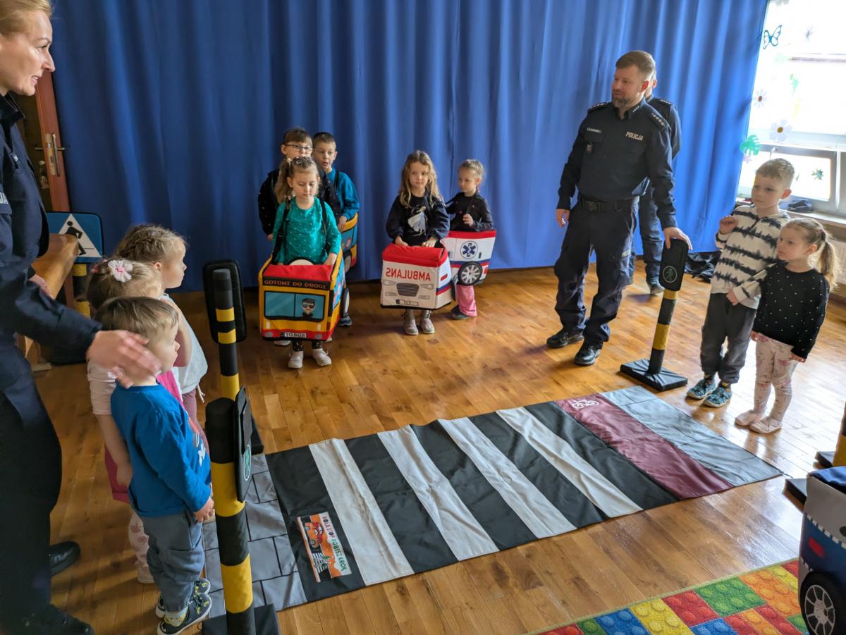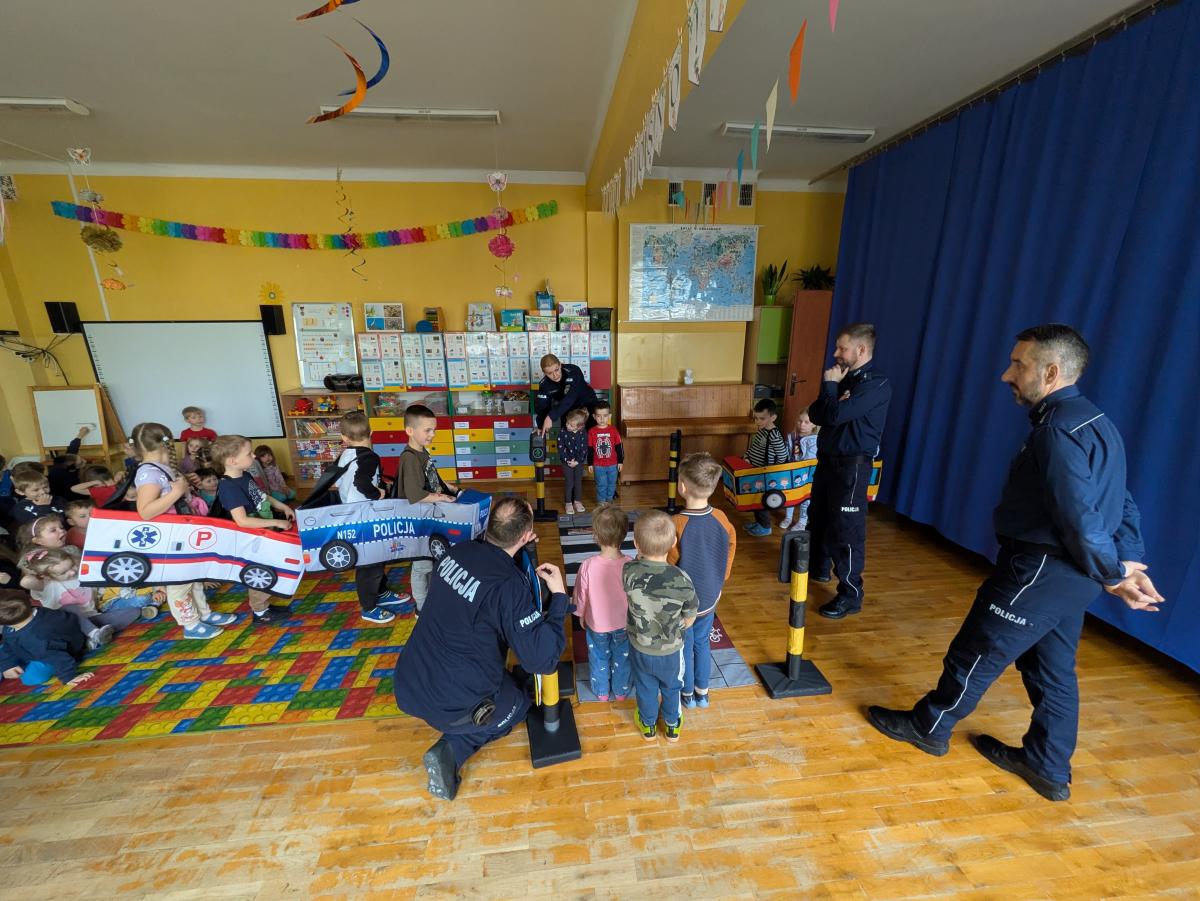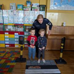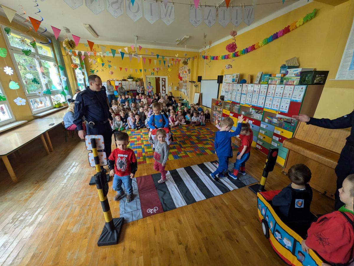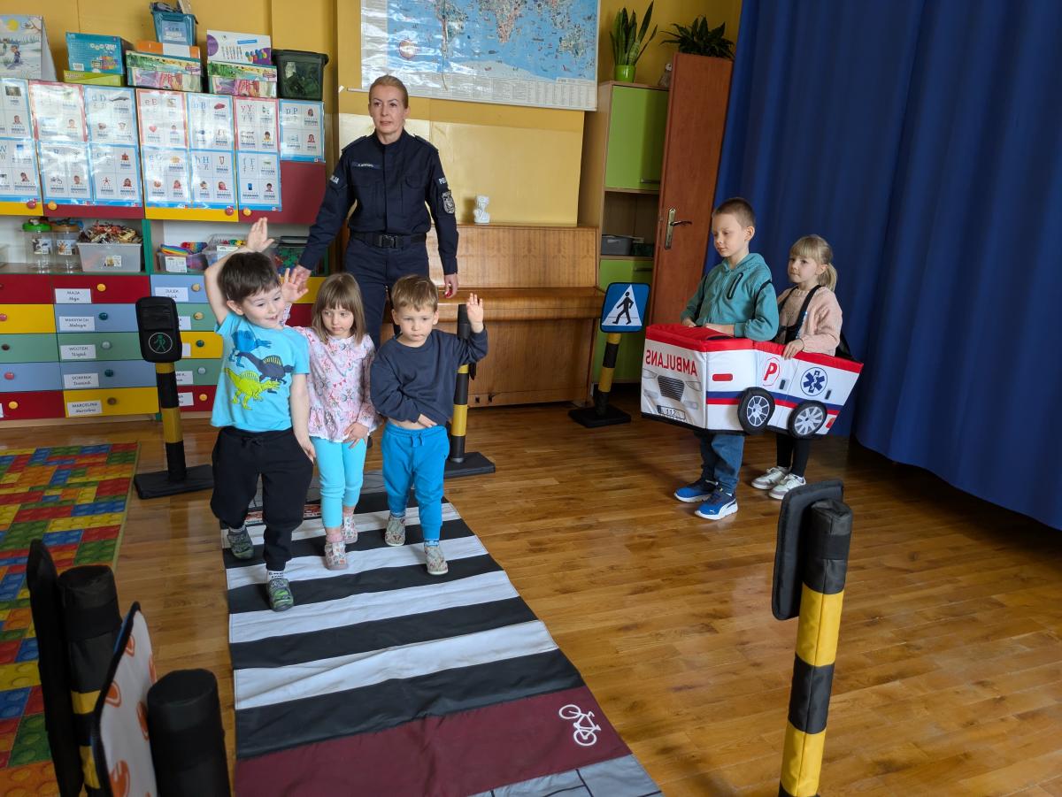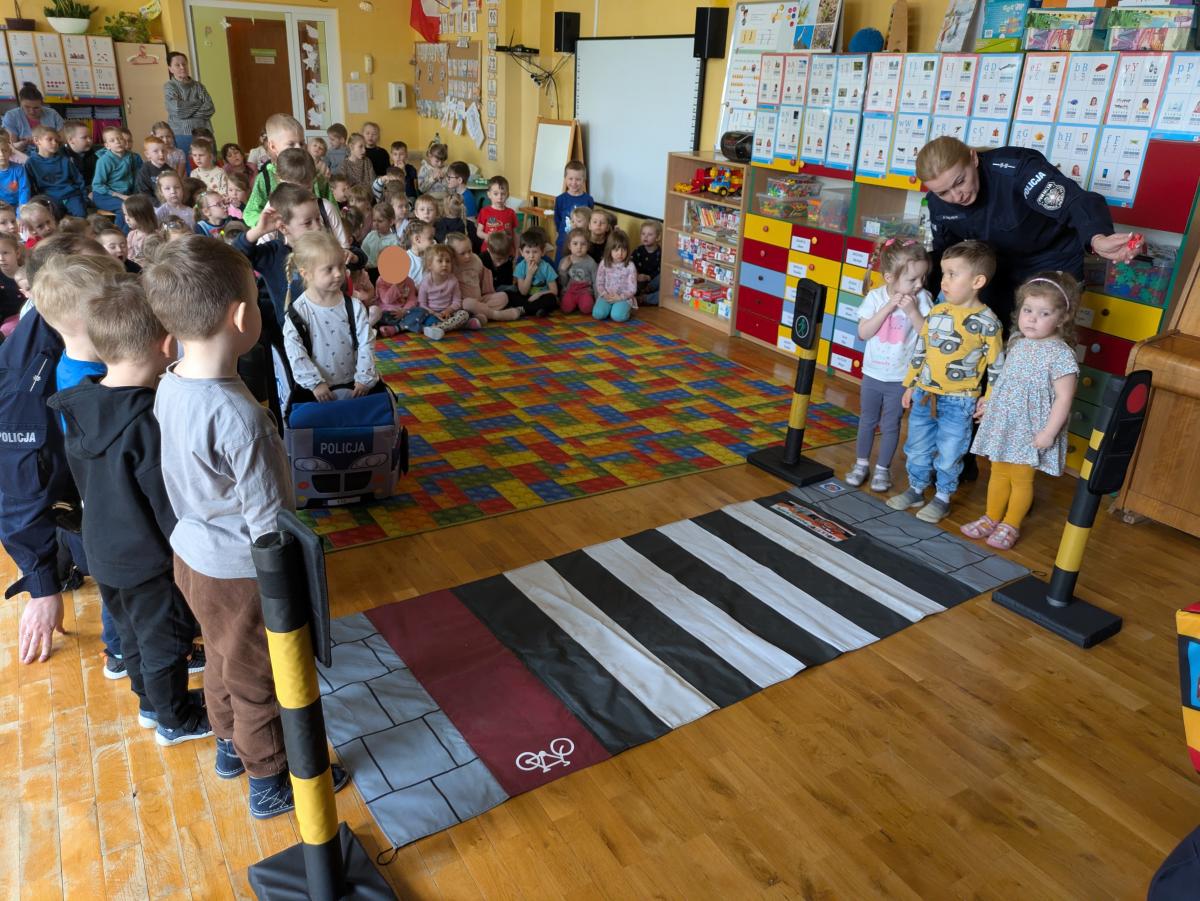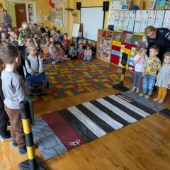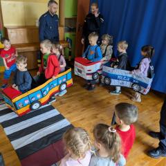 Głównym celem wizyty było przybliżenie dzieciom podstawowych zasady bezpiecznego poruszania się po drogach oraz przypomnienie numerów alarmowych. Przedszkolaki z dużym zainteresowaniem słuchały opowieści o pracy policji oraz zasadach bezpiecznego poruszania się po drodze. Goście w przystępny i ciekawy sposób wyjaśnili, kim jest pieszy i kierowca, a także jaką rolę pełnią znaki drogowe i sygnalizacja świetlna. Największą atrakcją spotkania była makieta drogowa, na której dzieci mogły w praktyce ćwiczyć poznane zasady. Przedszkolaki przechodziły przez przejście dla pieszych i "prowadziły" pojazdy: radiowóz, karetkę pogotowia i autobus.