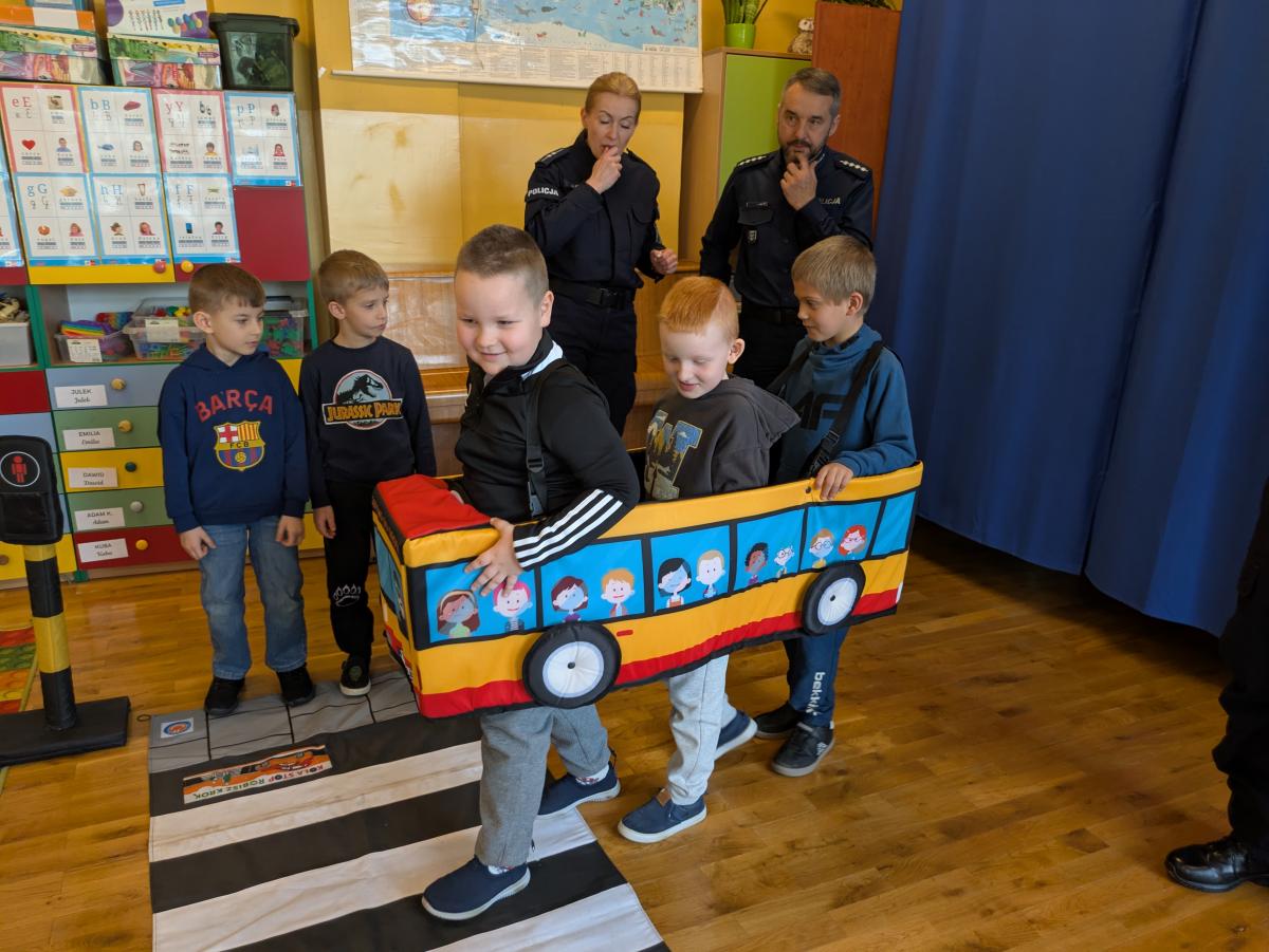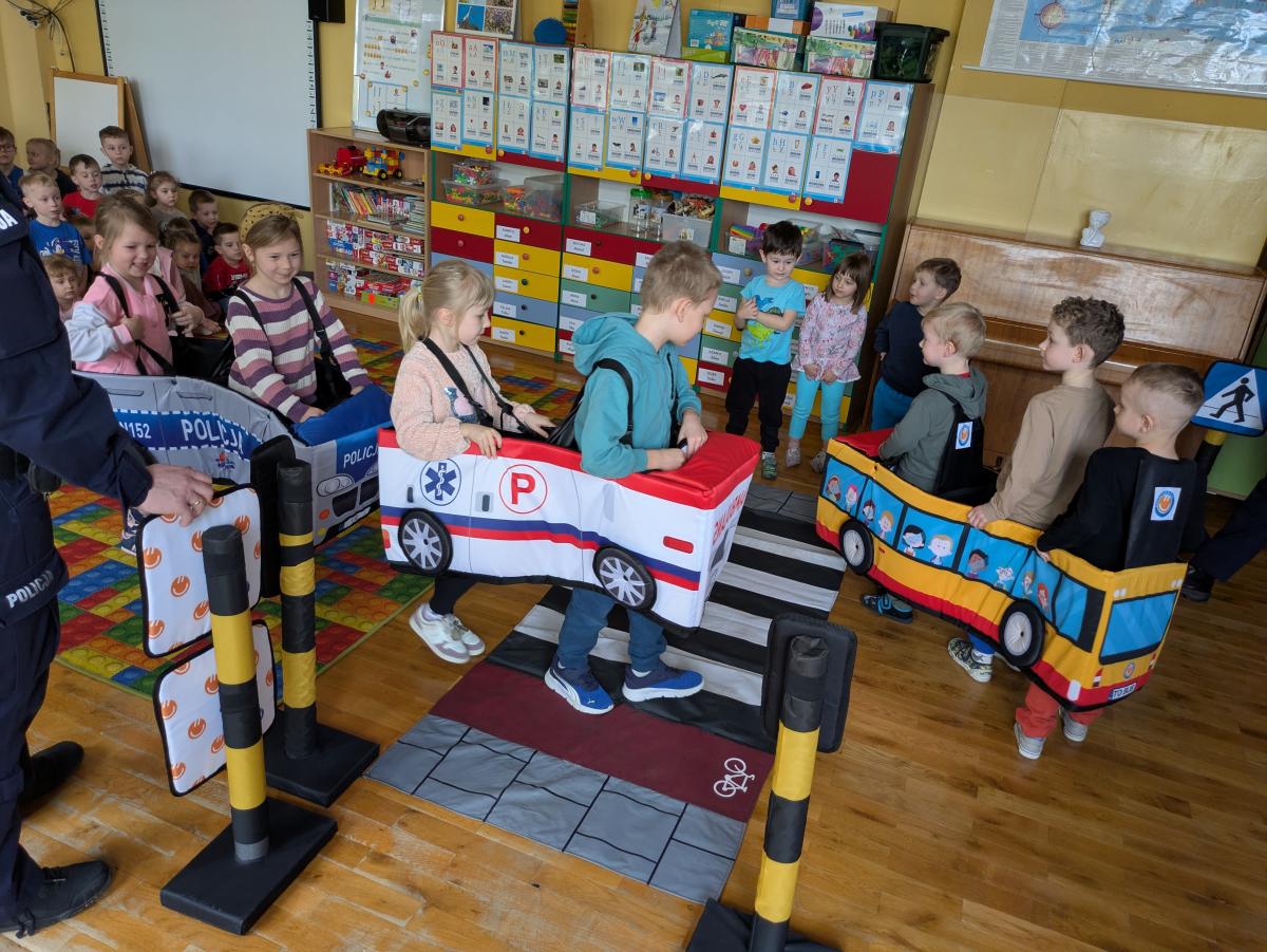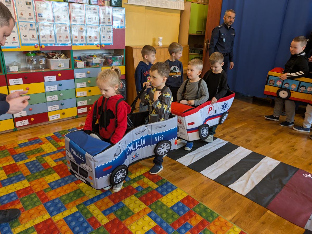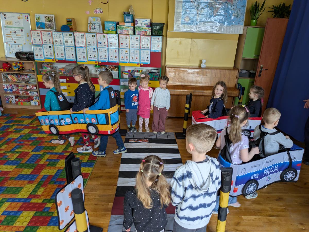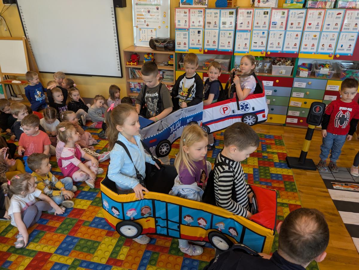 Głównym celem wizyty było przybliżenie dzieciom podstawowych zasady bezpiecznego poruszania się po drogach oraz przypomnienie numerów alarmowych. Przedszkolaki z dużym zainteresowaniem słuchały opowieści o pracy policji oraz zasadach bezpiecznego poruszania się po drodze. Goście w przystępny i ciekawy sposób wyjaśnili, kim jest pieszy i kierowca, a także jaką rolę pełnią znaki drogowe i sygnalizacja świetlna. Największą atrakcją spotkania była makieta drogowa, na której dzieci mogły w praktyce ćwiczyć poznane zasady. Przedszkolaki przechodziły przez przejście dla pieszych i "prowadziły" pojazdy: radiowóz, karetkę pogotowia i autobus.