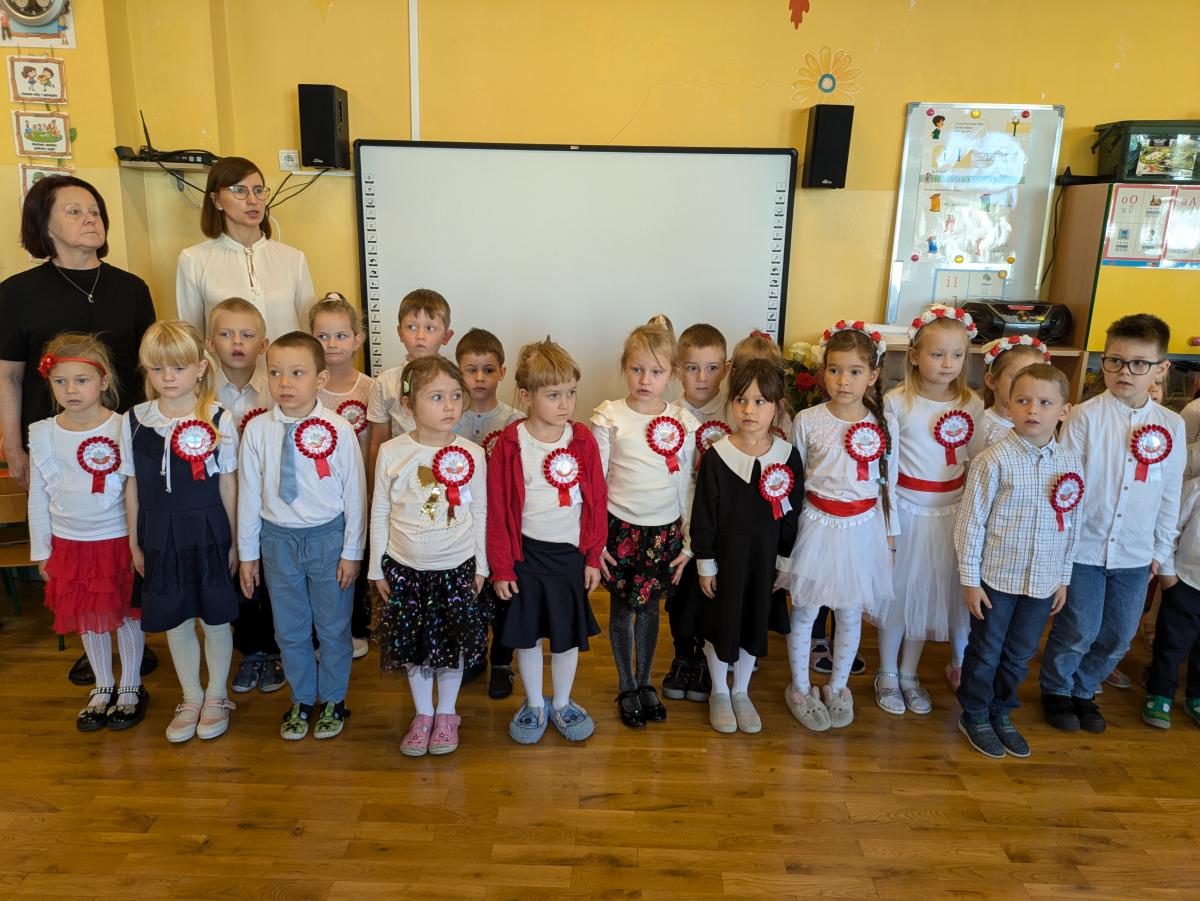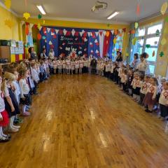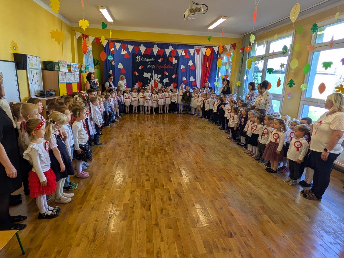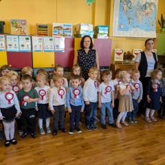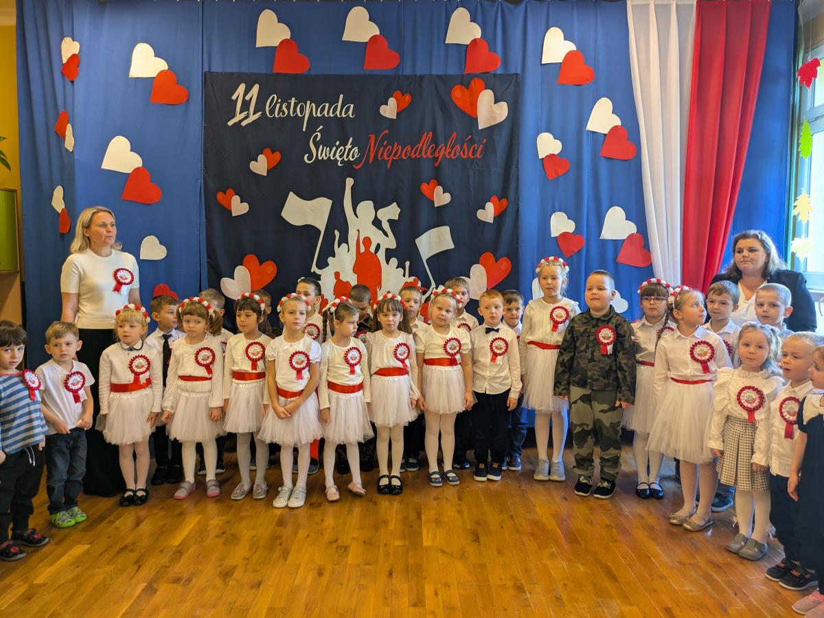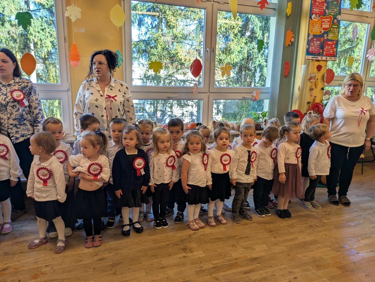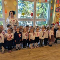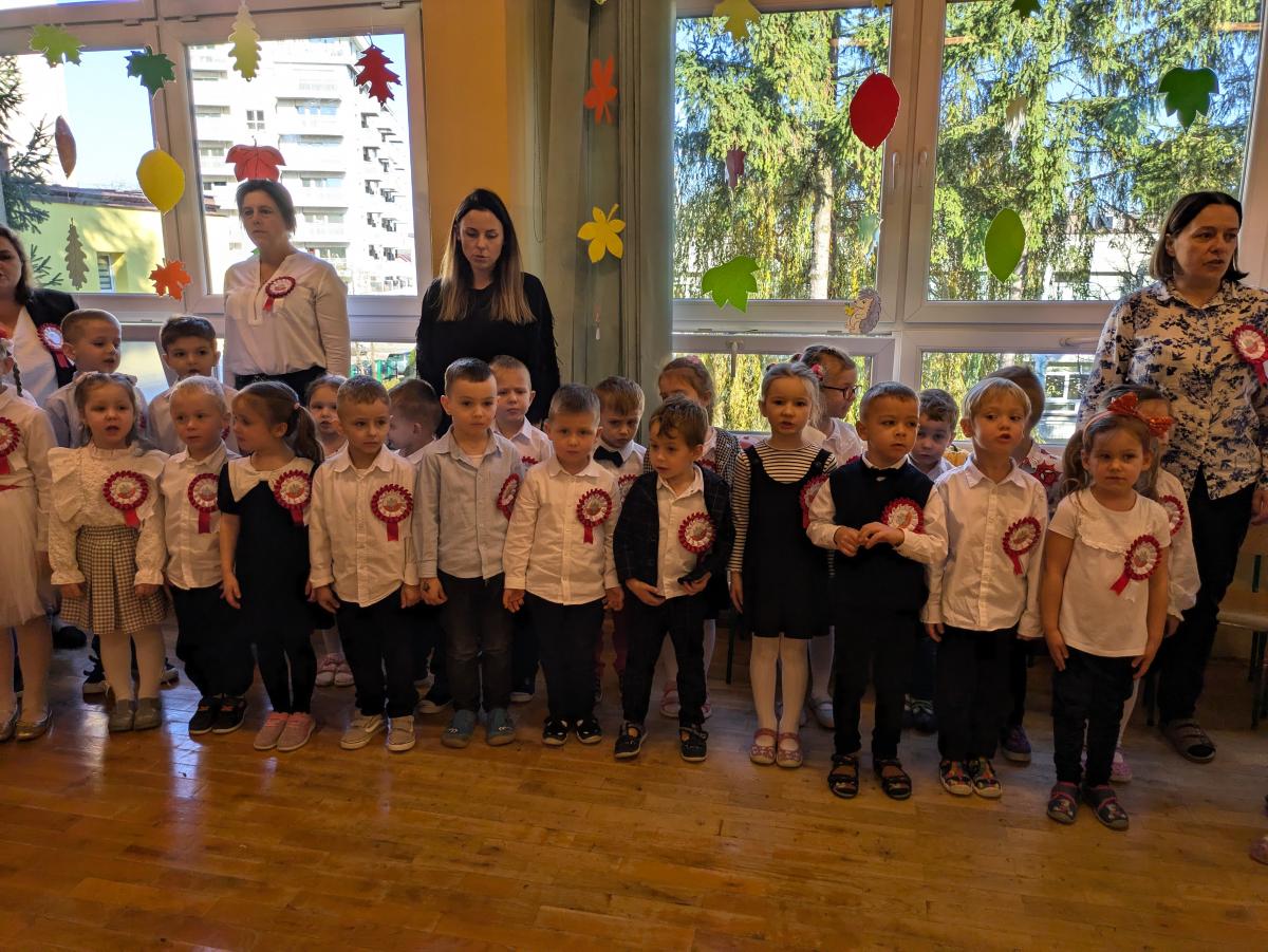 W tym roku po raz kolejny nasze przedszkole włączyło się w ogólnopolską akcję „Szkoła do hymnu”. 7 listopada 2025 r. o godz. 11:11 dzieci z wszystkich grup uroczyście odśpiewały "Mazurka Dąbrowskiego". Inicjatorem akcji jest Ministerstwo Edukacji i Nauki, które zaprosiło szkoły, przedszkola, placówki oświatowe do odśpiewania 4-zwrotkowego hymnu narodowego. Jej celem jest zachęcenie dzieci i młodzieży do wspólnego przeżywania Narodowego Święta Niepodległości oraz kształtowanie szacunku wobec polskich symboli narodowych. Już najmłodsze przedszkolaki znają godło, flagę i hymn naszego kraju. Dzieci w ramach zajęć i zabaw edukacyjnych zapoznawały się z mapą Polski, historią, zabytkami, charakterystycznymi miejscami, znanymi postaciami, muzyką, strojami regionalnymi, legendami itd. Udział w akcji jest jednym z działań rozwijających ich świadomość narodową i kształcących postawę patriotyczną.