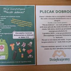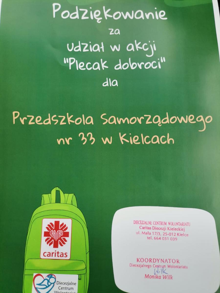 Wszystkie plecaki i dary dostarczyliśmy do biura Caritas w Kielcach przy ul. Małej. Plecaki trafią do osób bezdomnych i potrzebujących.