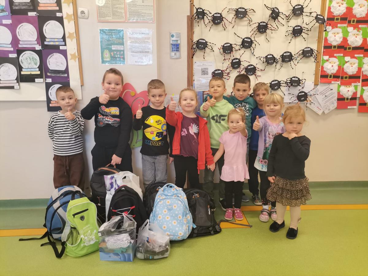 Od listopada mogliśmy przynosić do przedszkola nowe plecaki oraz niezbędne rzeczy, które trafią do osób potrzebujących.