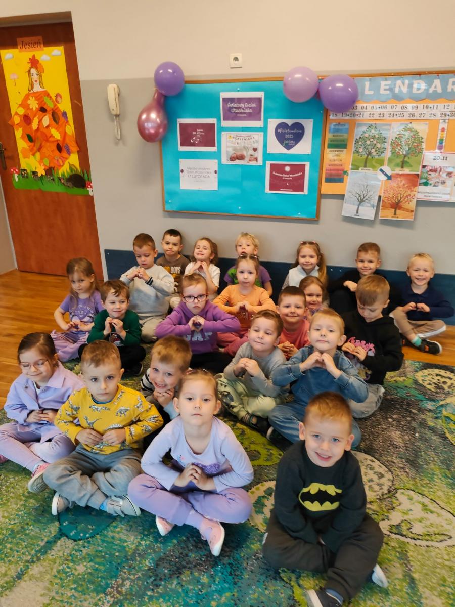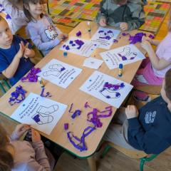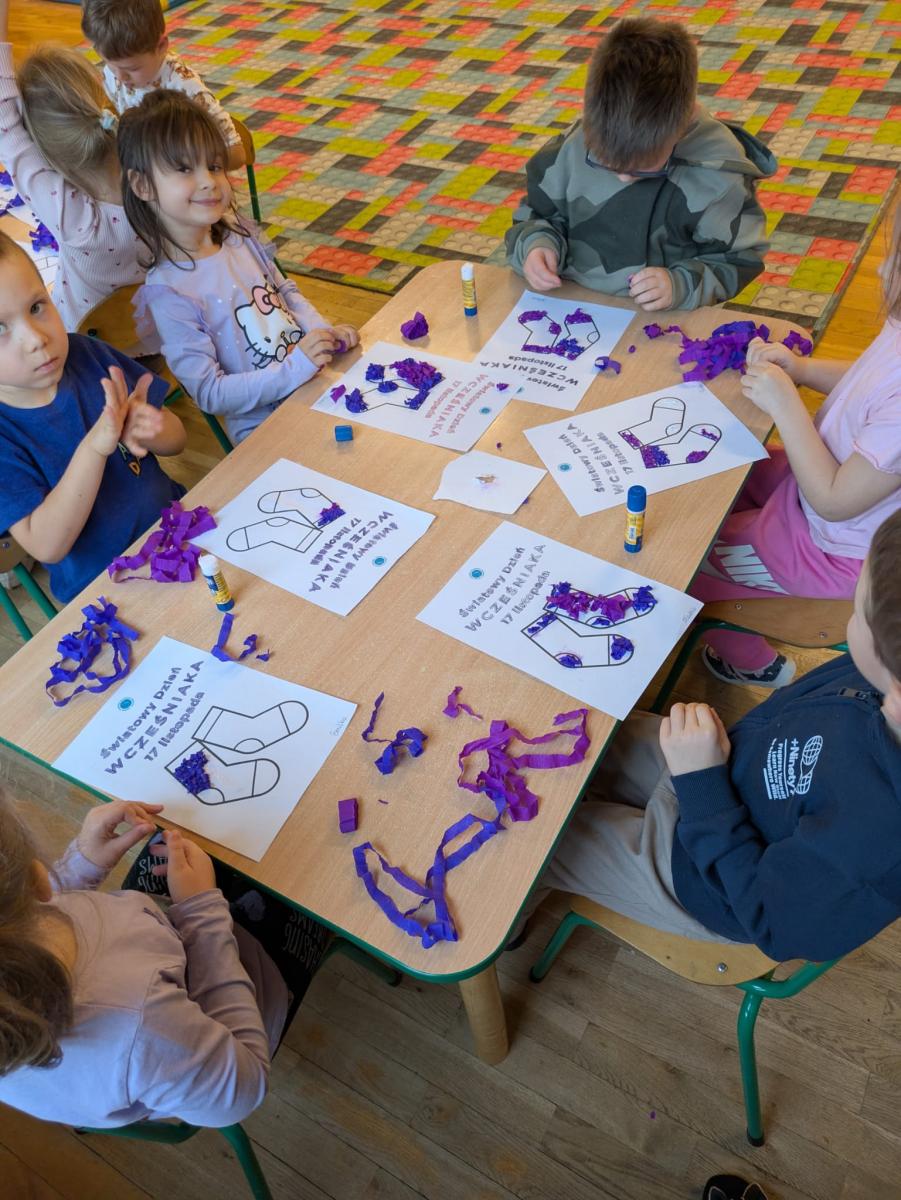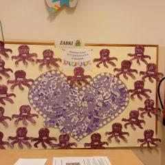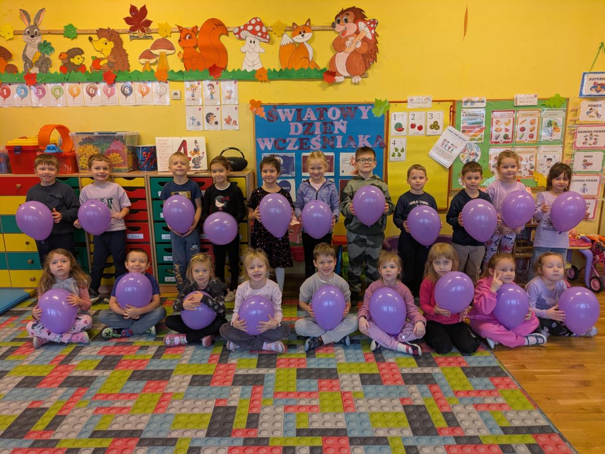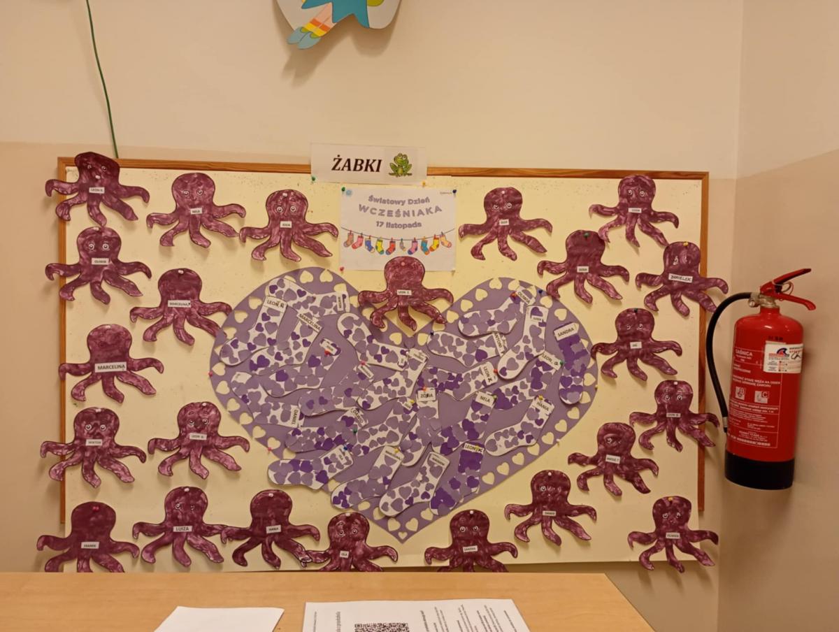 17 listopada obchodziliśmy w naszym przedszkolu Światowy Dzień Wcześniaka , włączając się tym samym do ogólnopolskiej akcji edukacyjno- zdrowotnej #fioletowelove. Dzieciom został przybliżony temat wcześniaków na podstawie opowiadania "Kangurek Oli" oraz prezentacji multimedialnej, zdjęć i ilustracji. W ramach solidarności z wcześniakami i ich rodzinami przedszkolaki przyszły tego dnia ubrane na fioletowo. Powstały ciekawe prace plastyczne : stópki niemowlęce, skarpetki,  serca i ośmiornice, symbolizujące małych wojowników.