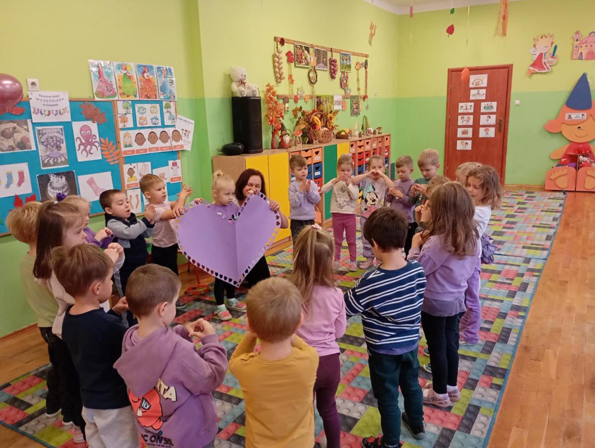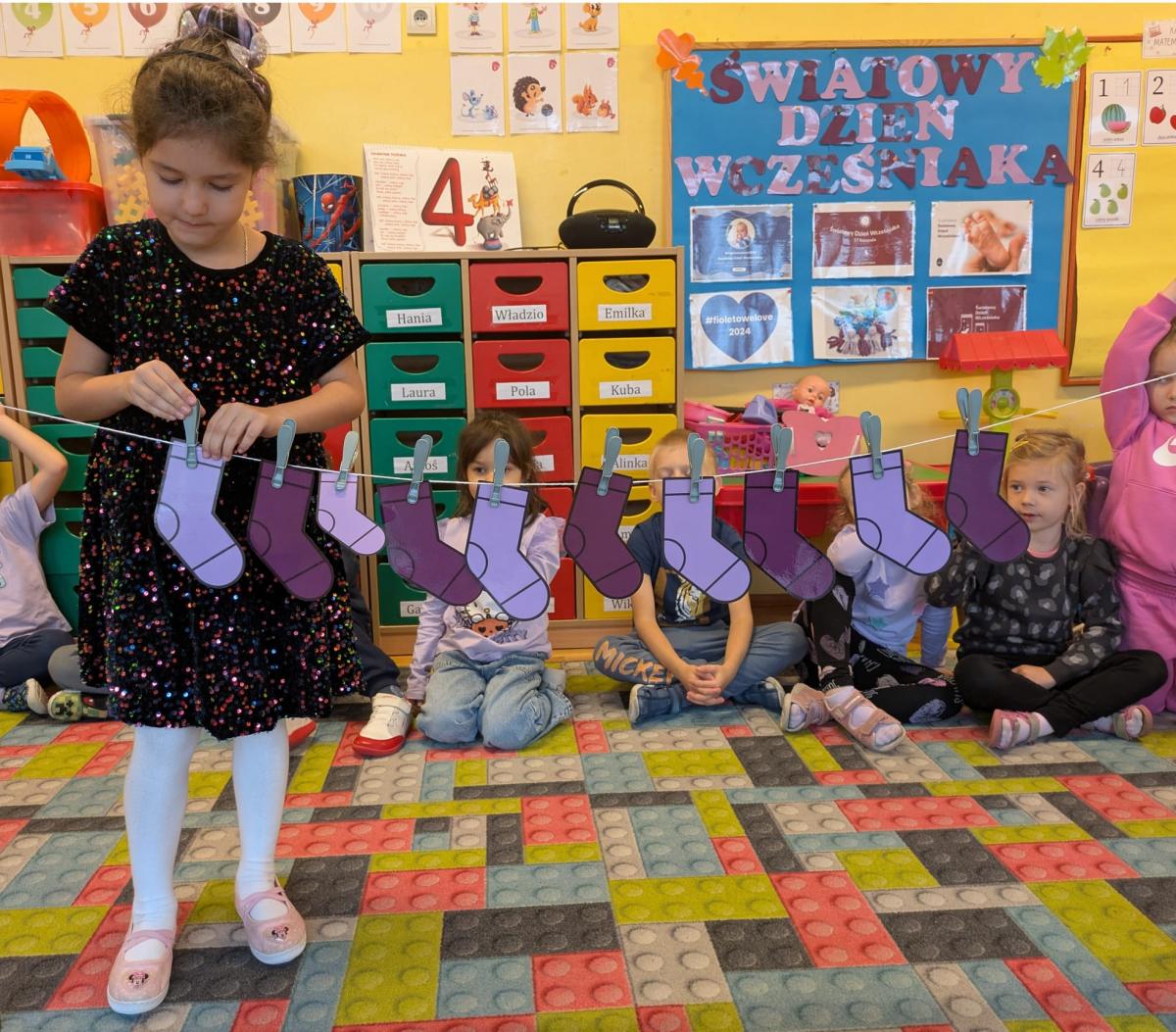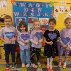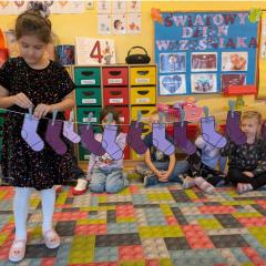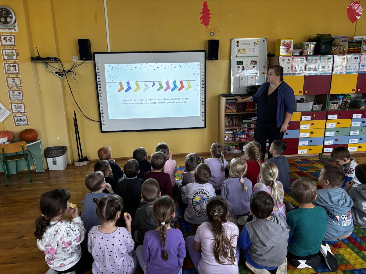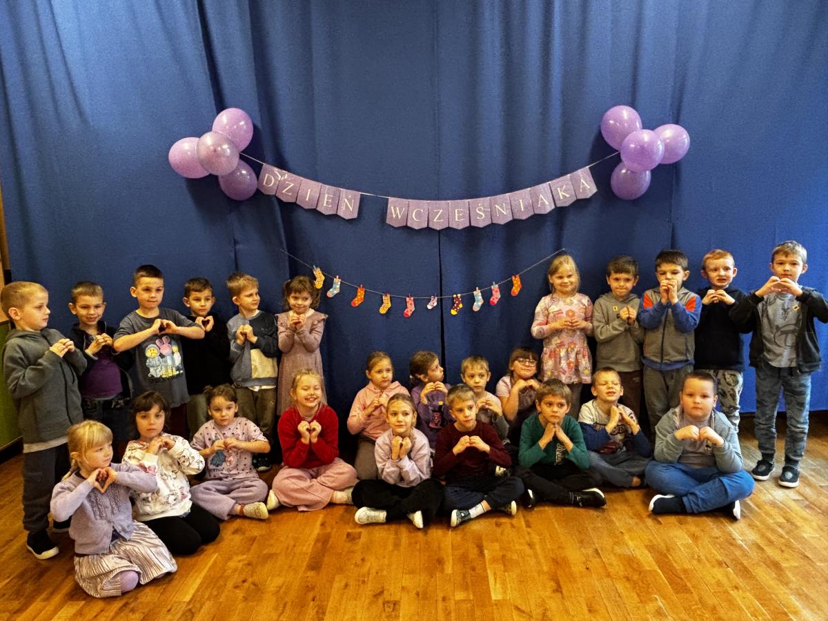 17 listopada obchodziliśmy w naszym przedszkolu Światowy Dzień Wcześniaka , włączając się tym samym do ogólnopolskiej akcji edukacyjno- zdrowotnej #fioletowelove. Dzieciom został przybliżony temat wcześniaków na podstawie opowiadania "Kangurek Oli" oraz prezentacji multimedialnej, zdjęć i ilustracji. W ramach solidarności z wcześniakami i ich rodzinami przedszkolaki przyszły tego dnia ubrane na fioletowo. Powstały ciekawe prace plastyczne : stópki niemowlęce, skarpetki,  serca i ośmiornice, symbolizujące małych wojowników.