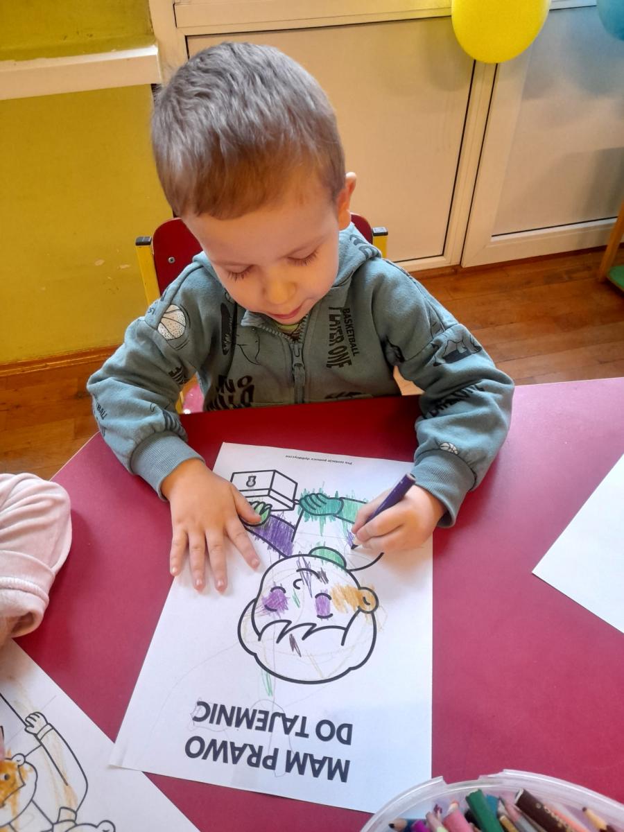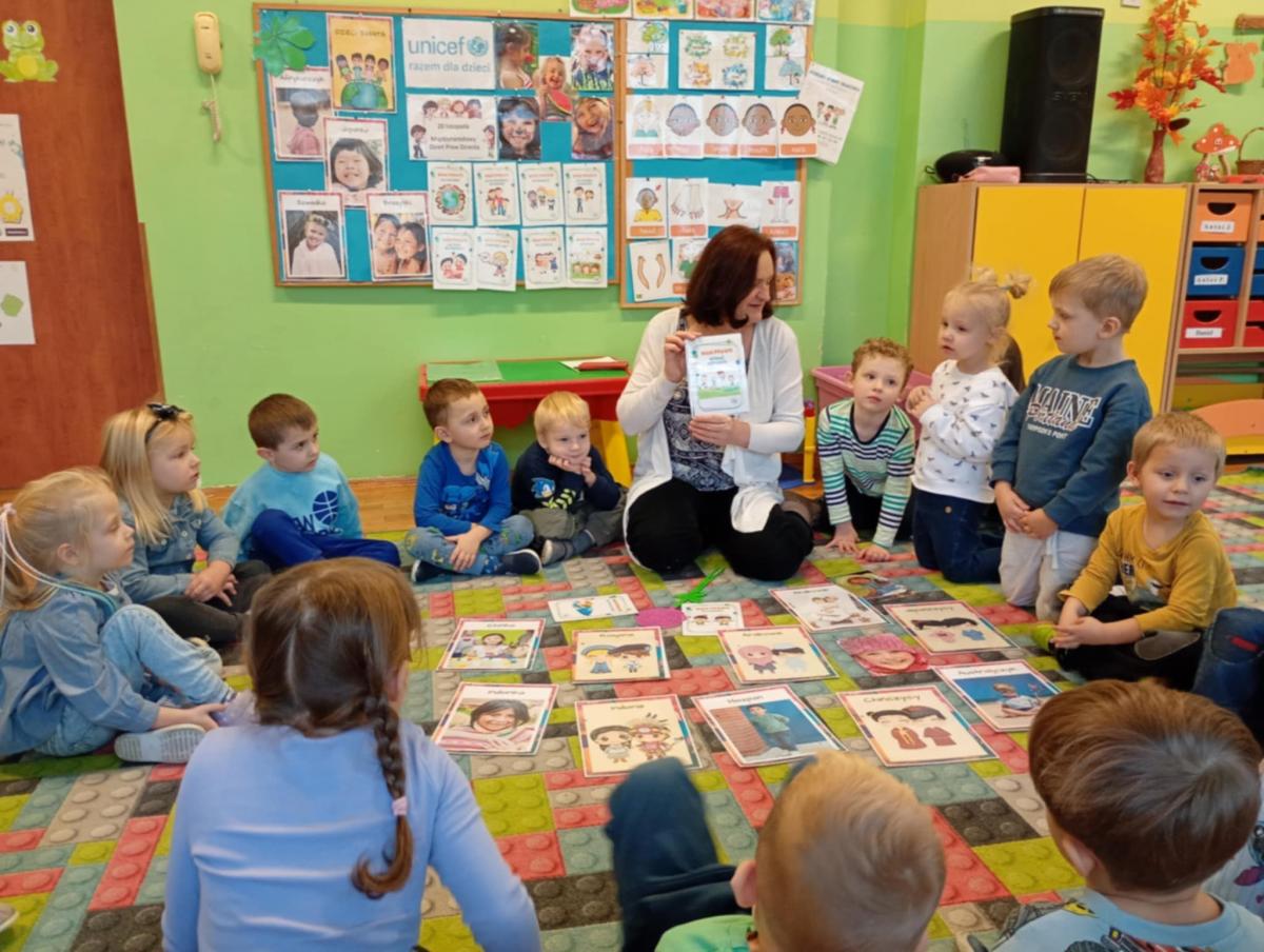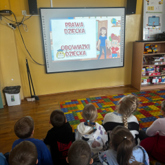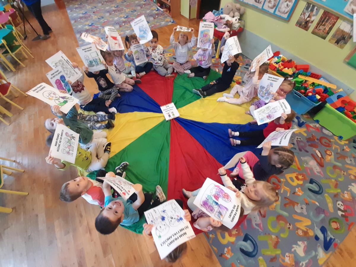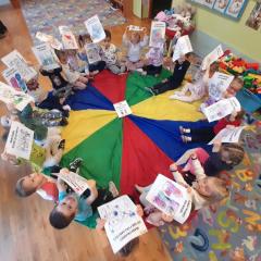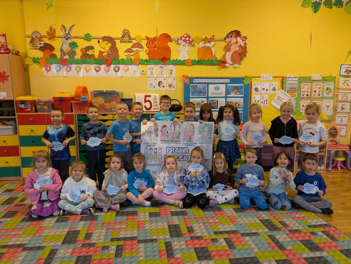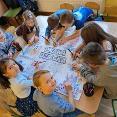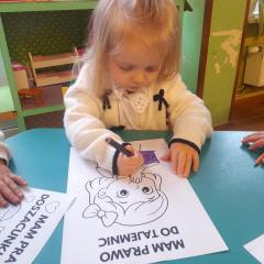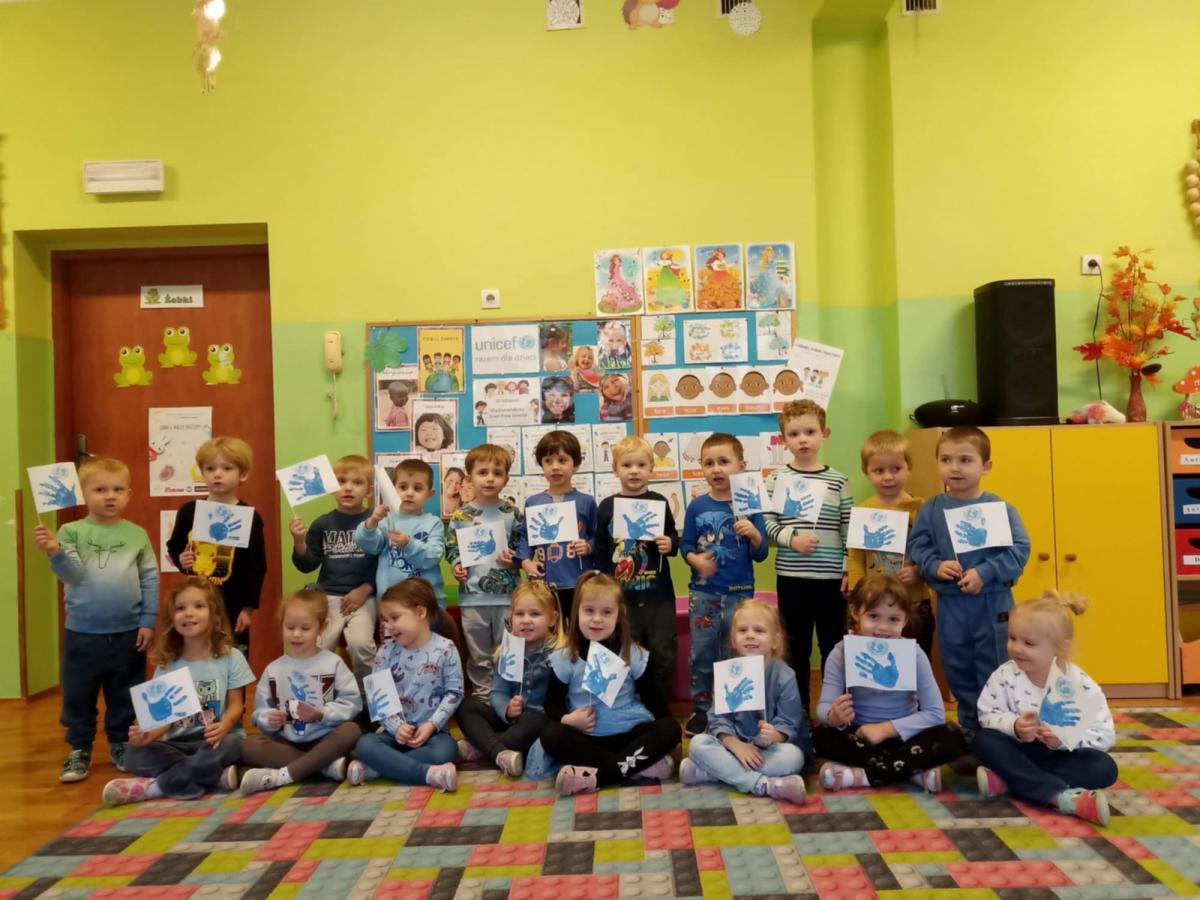 W tym dniu wszystkie grupy z naszego przedszkola włączyły się do akcji UNICEF - Międzynarodowy Dzień Praw Dziecka. Przedszkolaki przyszły ubrane na niebiesko - kolorze będącym symbolem solidarności ze wszystkimi dziećmi na świecie, również tymi, których prawa nie są przestrzegane. W grupach zostały przeprowadzone zajęcia o prawach dziecka z wykorzystaniem ciekawych materiałów edukacyjnych oraz odbyły się rozmowy na temat praw dzieci. Dzieci oglądały filmy edukacyjne i prezentacje o tej tematyce, kolorowały rysunki z wybranymi przez siebie prawami oraz wykonywały prace plastyczne i plakaty.