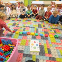 W tym module skupiliśmy się na rozwijaniu aktywnego spostrzegania, uważności i koordynacji wzrokowo-ruchowej. Umiejętność skupiania wzroku na obiektach wspiera rozwój pisania, rysowania i innych czynności manualnych. Jednym z ćwiczeń była zmiana miejsc w kole, która sprzyja koncentracji i pozwala dzieciom dostrzegać nowe szczegóły w otoczeniu. Skupialiśmy uwagę podczas takich zabaw jak „Królicze metamorfozy”, „Królicze Lupy”, „Pory roku”, „Królicze Pazurki”, „Raz, dwa, trzy… Alilo patrzy”, „Króliczkowa zgaduj zgadula”, „Kolorowe rytmy” i inne.