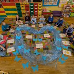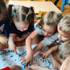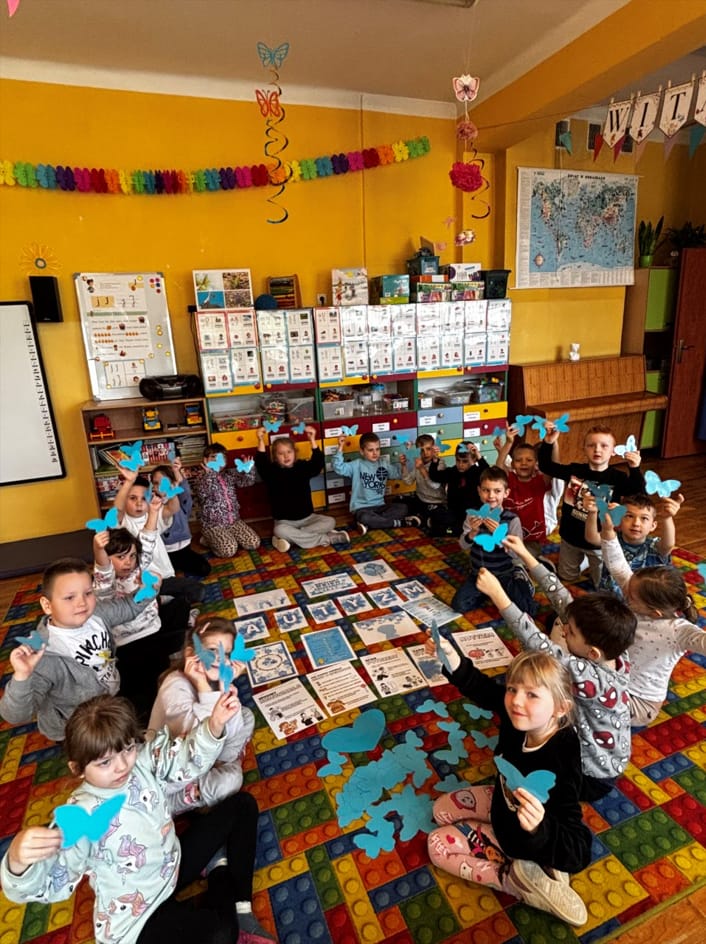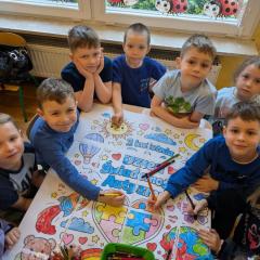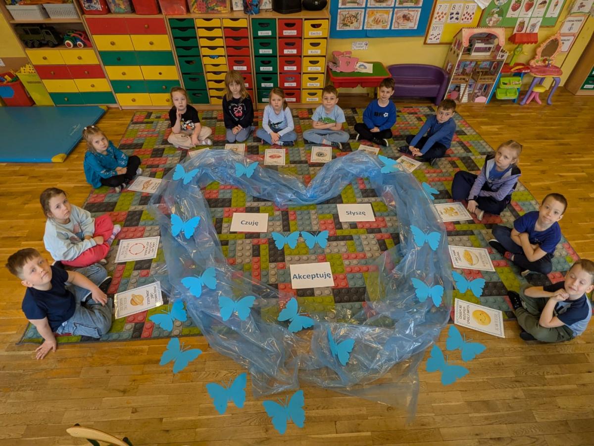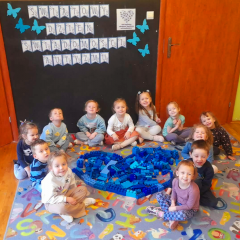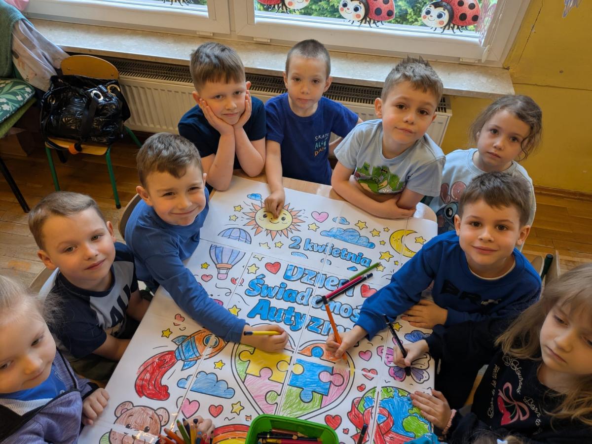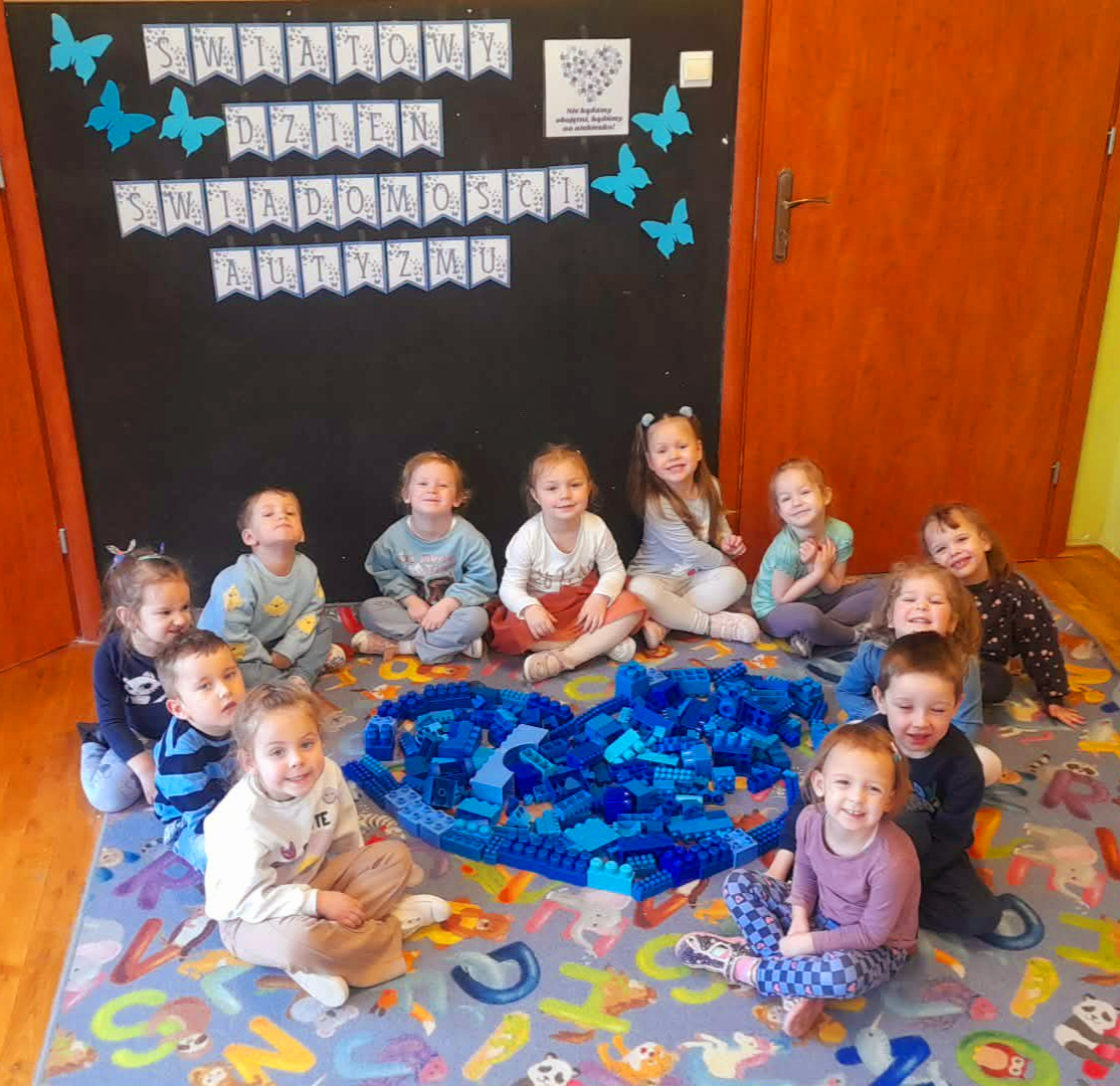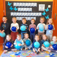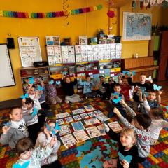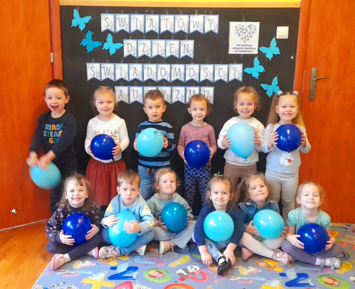 2 kwietnia przypadał Światowy Dzień Świadomości Autyzmu. Przedszkolaki na znak solidarności z osobami w spektrum autyzmu dołączyły do akcji. Tego dnia dominował kolor niebieski,  uznany za kolor autyzmu. Nie bez powodu,  gdyż jest to kolor najgłębszy i najzimniejszy, rozpływający się w nieskończoności horyzontu. W przedszkolu odbyły się zajęcia dotyczące autyzmu mające na celu budowanie wśród dzieci wrażliwości społecznej w tym zakresie. W trakcie zajęć zwrócono uwagę na potrzebę większej empatii i tolerancji dla odmiennych możliwości i potrzeb osób w spektrum autyzmu. Dzieci poznały pojęcie "autyzm" oraz charakterystyczne cechy występujące u osób z tym zaburzeniem.  Proste ćwiczenia sensoryczne pomogły dzieciom zrozumieć, w jaki sposób działają zmysły osób z autyzmem. Dzieci w trakcie zajęć dowiedziały się, z jakimi kłopotami mogą mierzyć się te osoby, jakie emocje odczuwają oraz jak być dobrym przyjacielem takiej osoby. Dowiedziały się, że osoby w spektrum autyzmu inaczej odbierają świat, inaczej pokazują swoje emocje, ale tak samo lubią zabawę, chcą mieć przyjaciół i chcą być szczęśliwi. Mimo, że inaczej komunikują się z otoczeniem, mają takie same potrzeby i prawa jak każdy. Celem akcji było skupienie się na akceptacji i wspieraniu osób w spektrum autyzmu. Przedszkolaki i wychowawcy włączając się do akcji kolejny raz udowodnili, że są tolerancyjni i wrażliwi na potrzeby innych.
