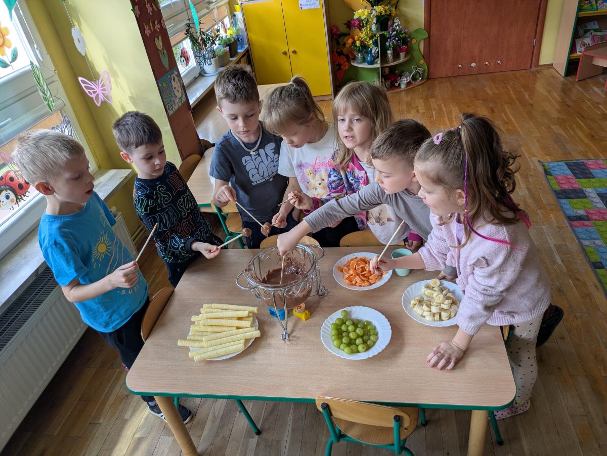 Dzieci miały również okazję do spróbowania ciasteczek Oreo, czekoladowego fondue z owocami oraz wafelków z nutellą. Powstały również piękne prace plastyczne pt. "Moja ulubiona czekolada" z wykorzystaniem posypki. Nie zabrakło także zabaw ruchowych przy piosence "Chocolate choco choco".