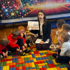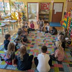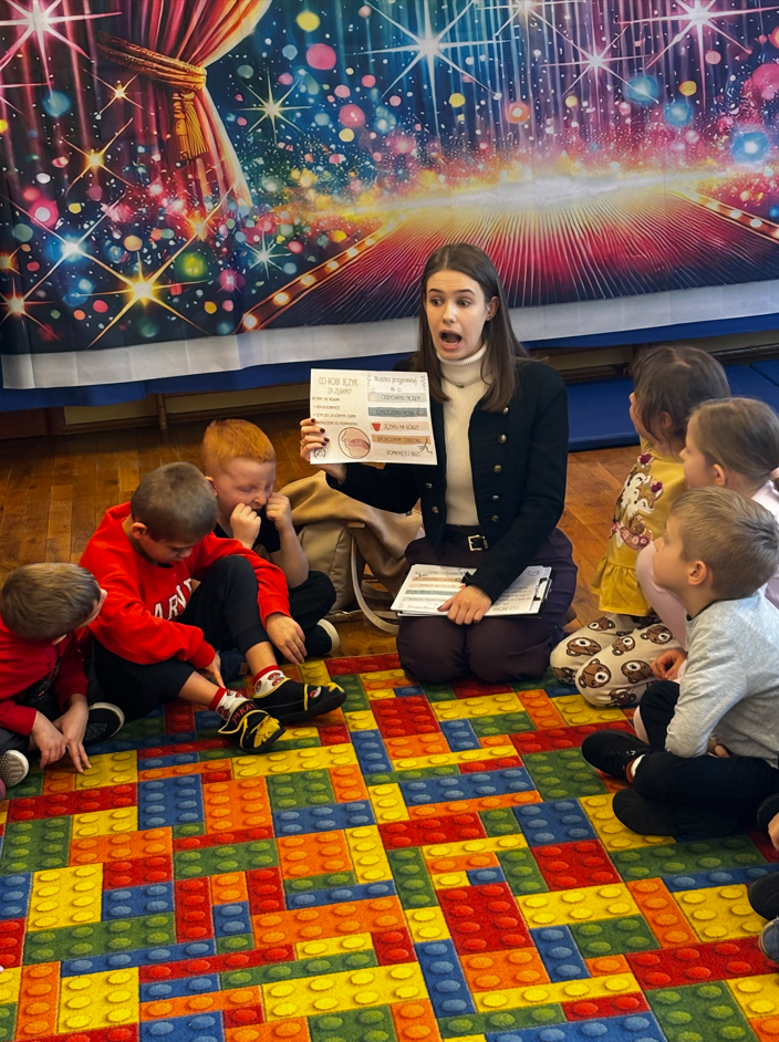 W piątek w naszym przedszkolu w dwóch najstarszych grupach odbyły się warsztaty logopedyczne z Panią Justyną Pietrasiak z PPP w Kielcach. Warsztaty miały charakter profilaktyki logopedycznej. Celem zajęć było wspomaganie prawidłowego rozwoju mowy u dzieci, rozbudzenie ciekawości aktywnością słowną oraz zwiększenie możliwości poprawnego opanowania języka przez dzieci.