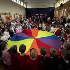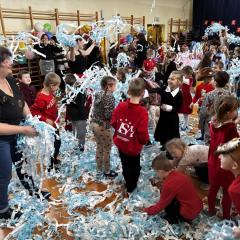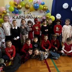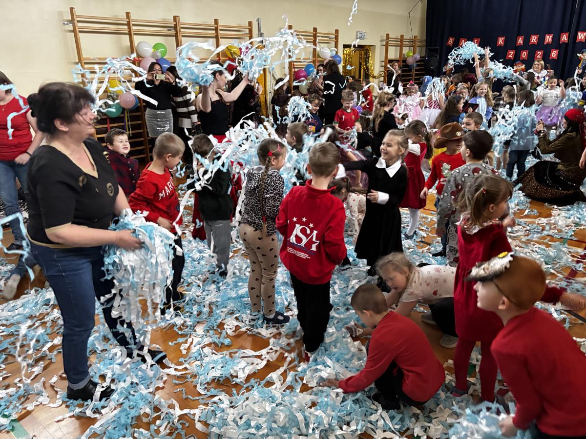 W piątek, 13 lutego 2026 r. najstarsza grupa przedszkolna miała przyjemność uczestniczyć w Balu Karnawałowym w Szkole Podstawowej nr 15 w Kielcach. Podczas balu dzieci tańczyły do znanych i lubianych piosenek, brały udział w wesołych zabawach ruchowych. Nie zabrakło wspólnych tańców w kole. W czasie trwającej zabawy na dzieci czekało moc niespodzianek tj. malowanie twarzy oraz tatuaże które cieszyły się dużym zainteresowaniem. Dzieci mimo zmęczenia świetnie się bawiły. Zapraszamy do obejrzenia zdjęć.