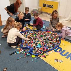 W dniu 13.04.2026 r. grupa IV "Biedronki" i grupa V "Sówki" brały udział w warsztatach konstrukcyjnych. Warsztaty odbyły się w pobliskim centrum "Edukido". Dzieci z pomocą instruktorów tworzyły budowle nawiązujące do tematu "Misja w kosmosie". Prace były tworzone przez dzieci w małych grupach. Wszyscy uczestnicy wykazali się kreatywnością oraz sumiennością. W czasie trwania warsztatów nie zabrakło również miejsca na dobrą zabawę!