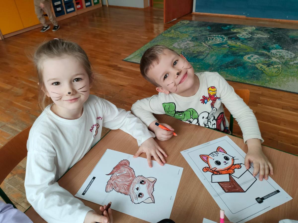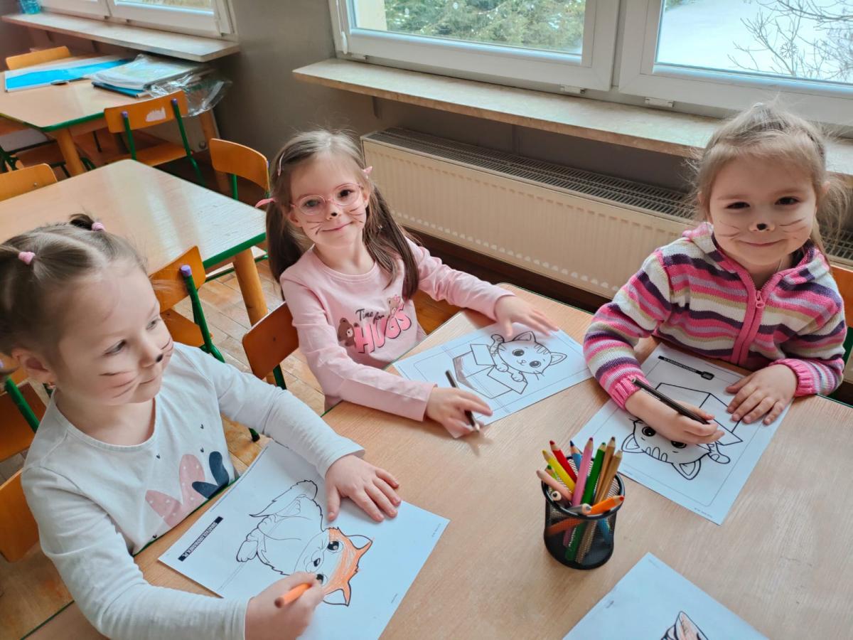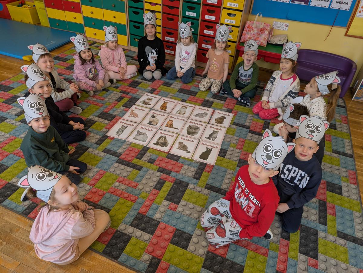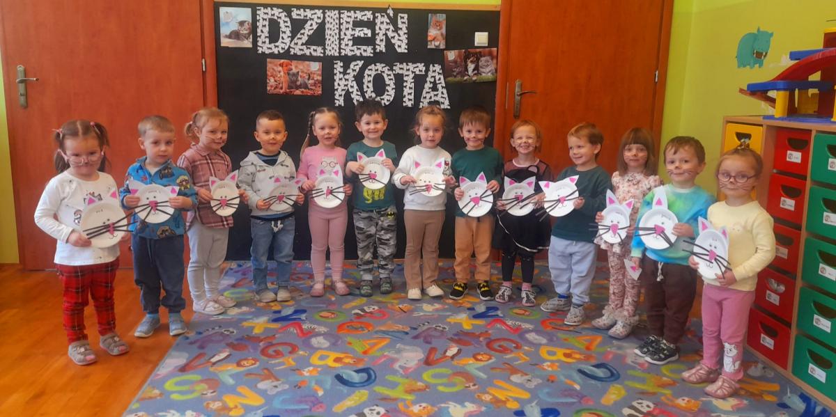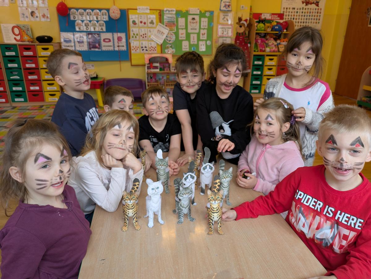We wtorek, 17 lutego przedszkolaki ze wszystkich grup obchodziły Światowy Dzień Kota. Podczas zajęć dzieci poznały ciekawostki na temat tych fascynujących zwierząt, dowiedziały się czym się żywią, jakie są ich zwyczaje oraz jak się nimi opiekować. Nie zabrakło kocich zabaw, podczas których przedszkolaki mogły naśladować: koci grzbiet, przeciągającego się kotka czy mruczenie. Dzieci wzięły także udział w zabawach z kłębkiem włóczki, przeliczały kocie przysmaki, łączyły ilustracje z podpisami, odgadywały zagadki na temat znanych kotów oraz dopasowywały koty do ich cieni. Powstały również piękne prace z wykorzystaniem różnych technik plastycznych, a na koniec przedszkolaki wspólnie zaśpiewały i zatańczyły w rytm kociej muzyki.