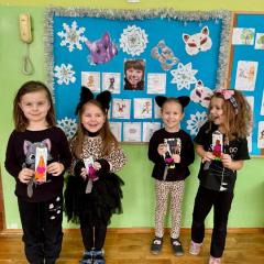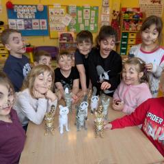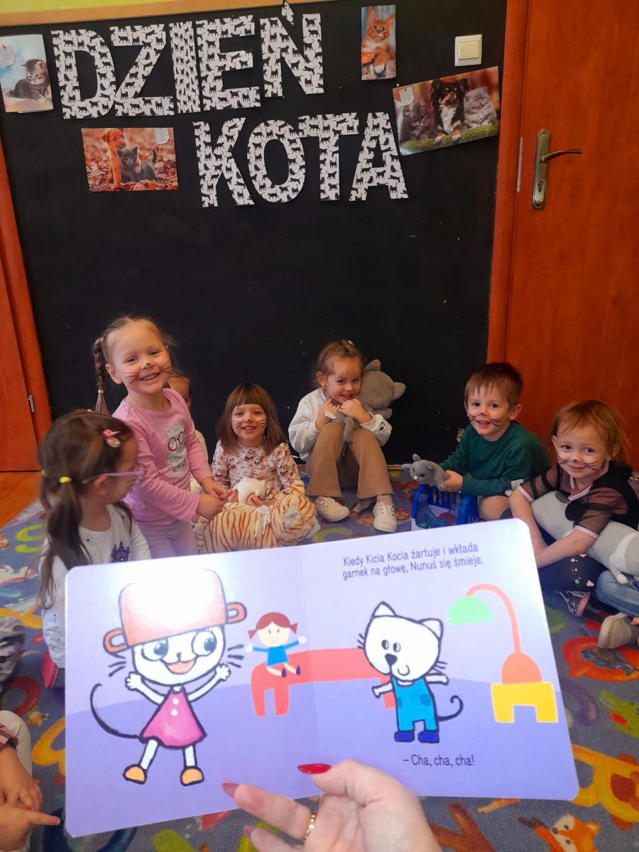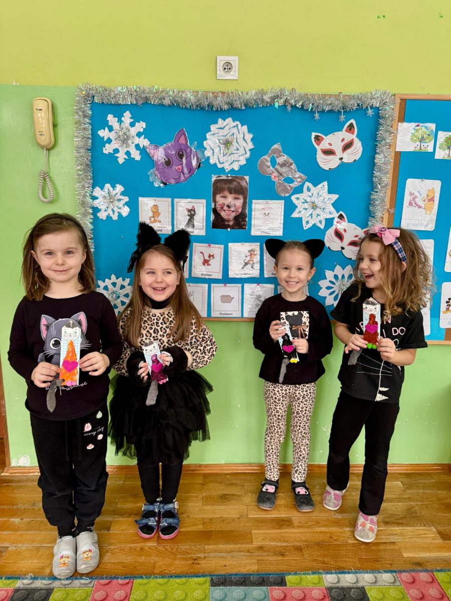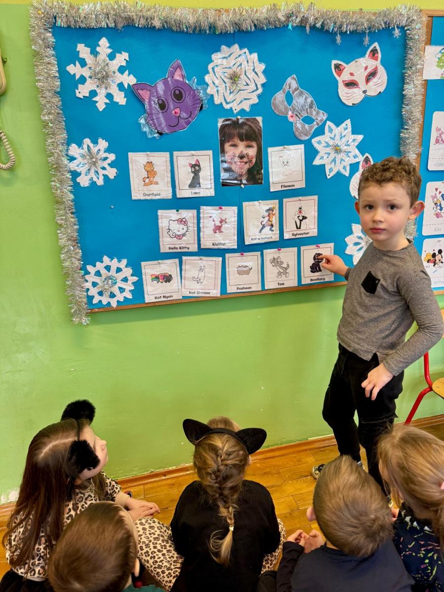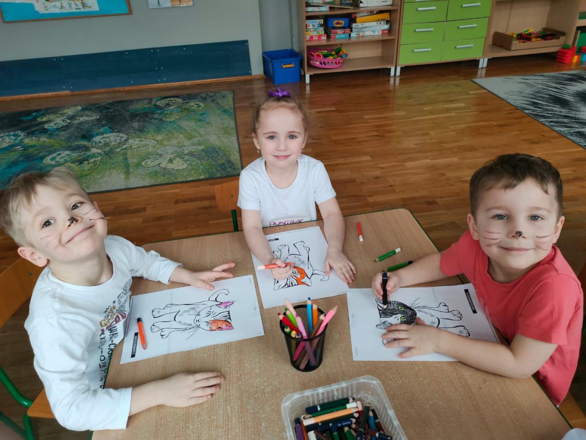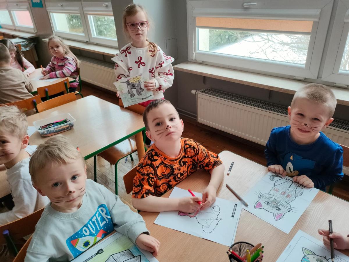 We wtorek, 17 lutego przedszkolaki ze wszystkich grup obchodziły Światowy Dzień Kota. Podczas zajęć dzieci poznały ciekawostki na temat tych fascynujących zwierząt, dowiedziały się czym się żywią, jakie są ich zwyczaje oraz jak się nimi opiekować. Nie zabrakło kocich zabaw, podczas których przedszkolaki mogły naśladować: koci grzbiet, przeciągającego się kotka czy mruczenie. Dzieci wzięły także udział w zabawach z kłębkiem włóczki, przeliczały kocie przysmaki, łączyły ilustracje z podpisami, odgadywały zagadki na temat znanych kotów oraz dopasowywały koty do ich cieni. Powstały również piękne prace z wykorzystaniem różnych technik plastycznych, a na koniec przedszkolaki wspólnie zaśpiewały i zatańczyły w rytm kociej muzyki.