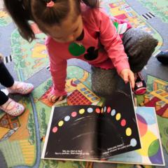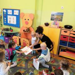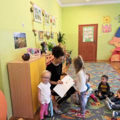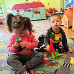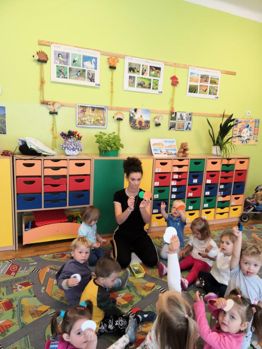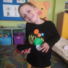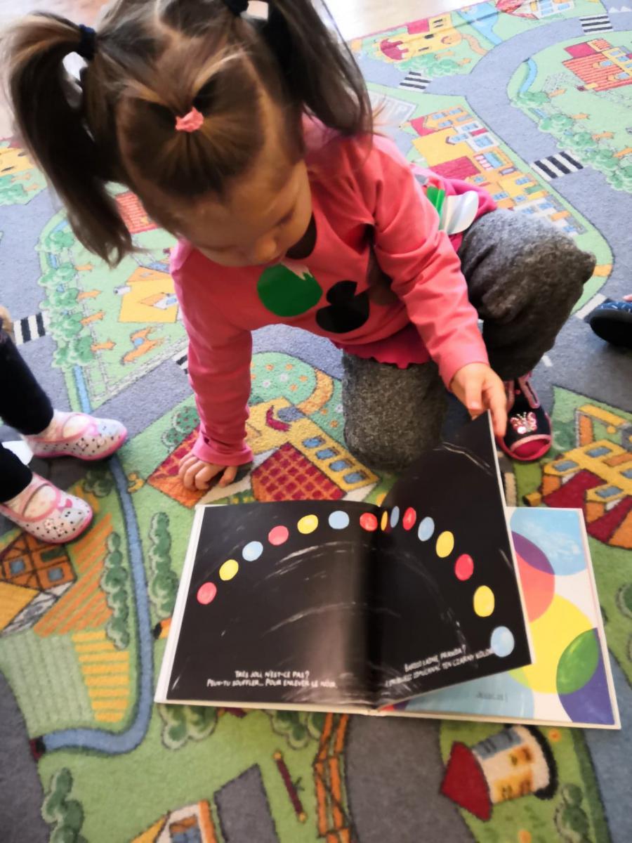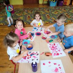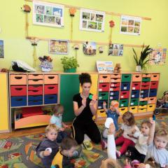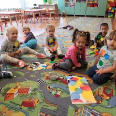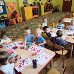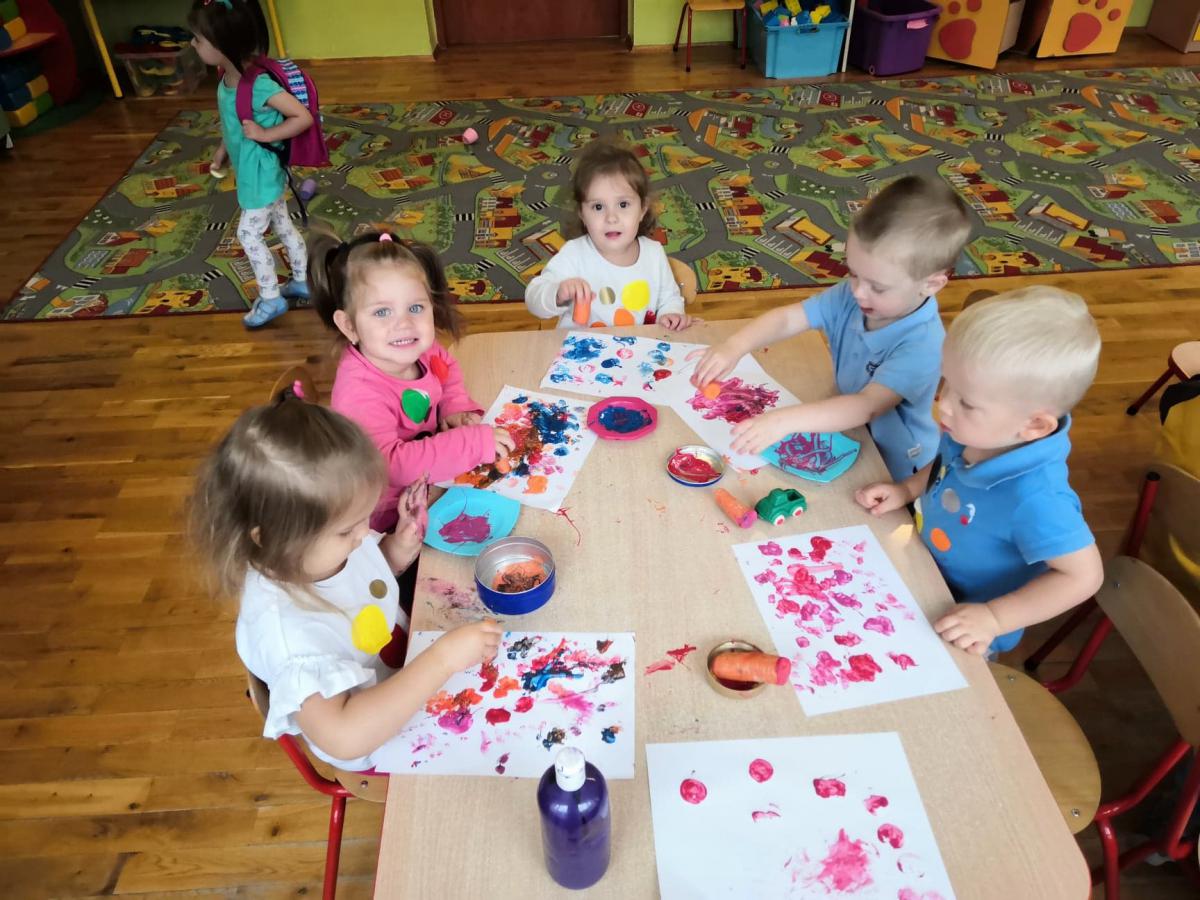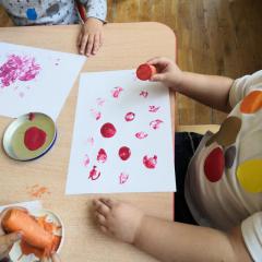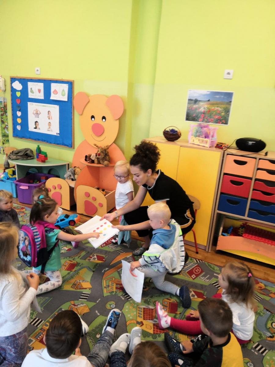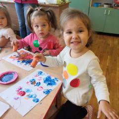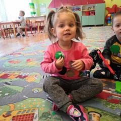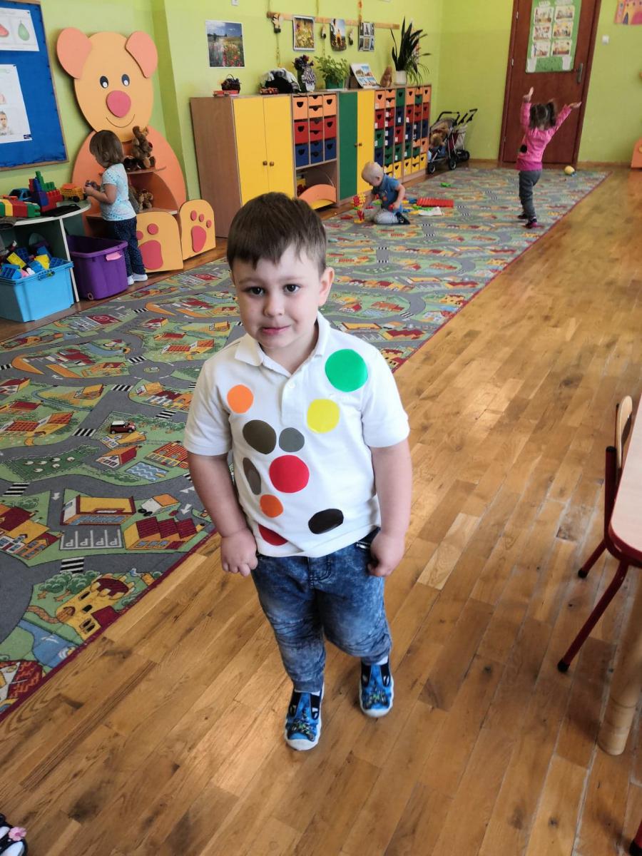 Odszukiwaliśmy kropki tam, gdzie wcześniej ich nie zauważaliśmy, porównywaliśmy ich wielkości, stemplowaliśmy marchewkowe kropki, tworzyliśmy wykropkowane ubranka.