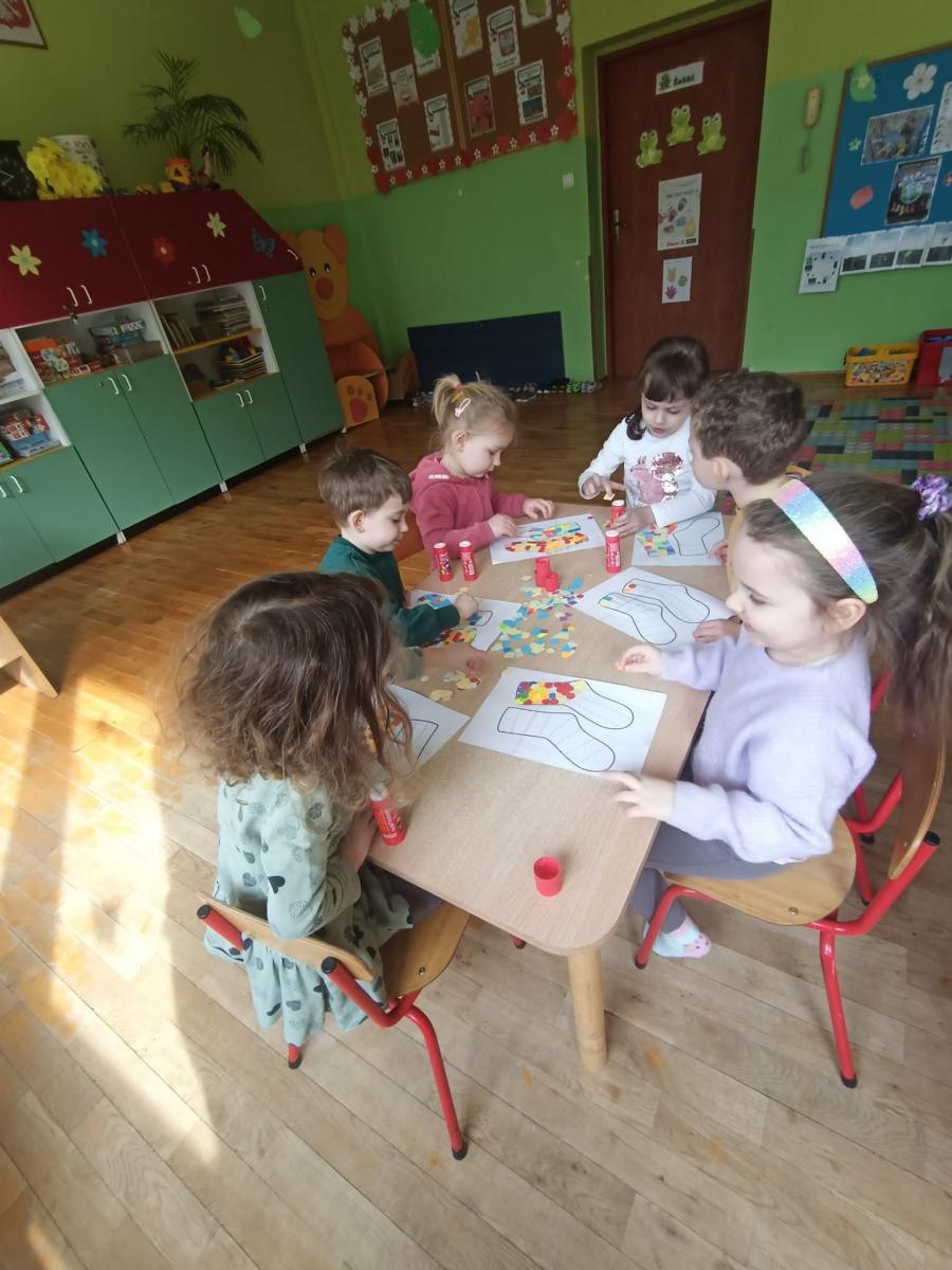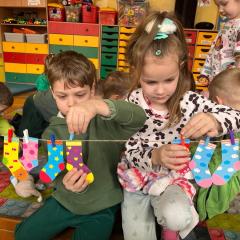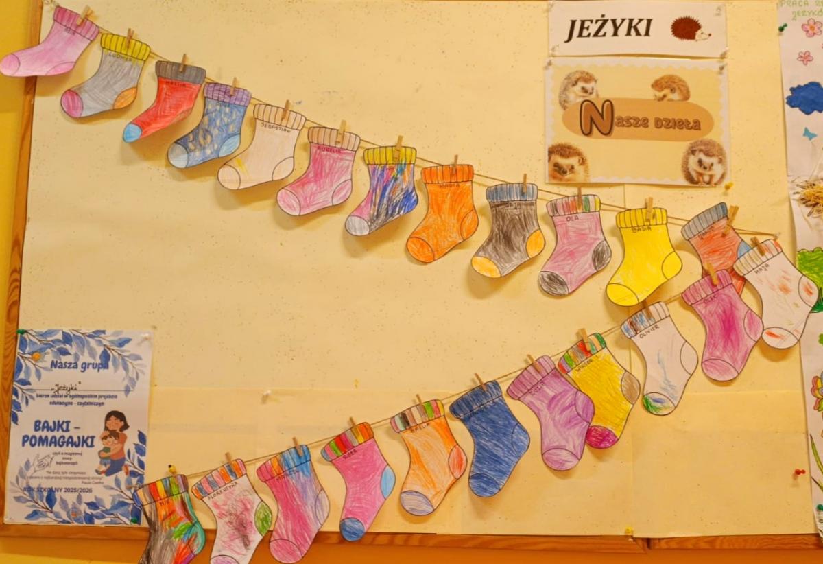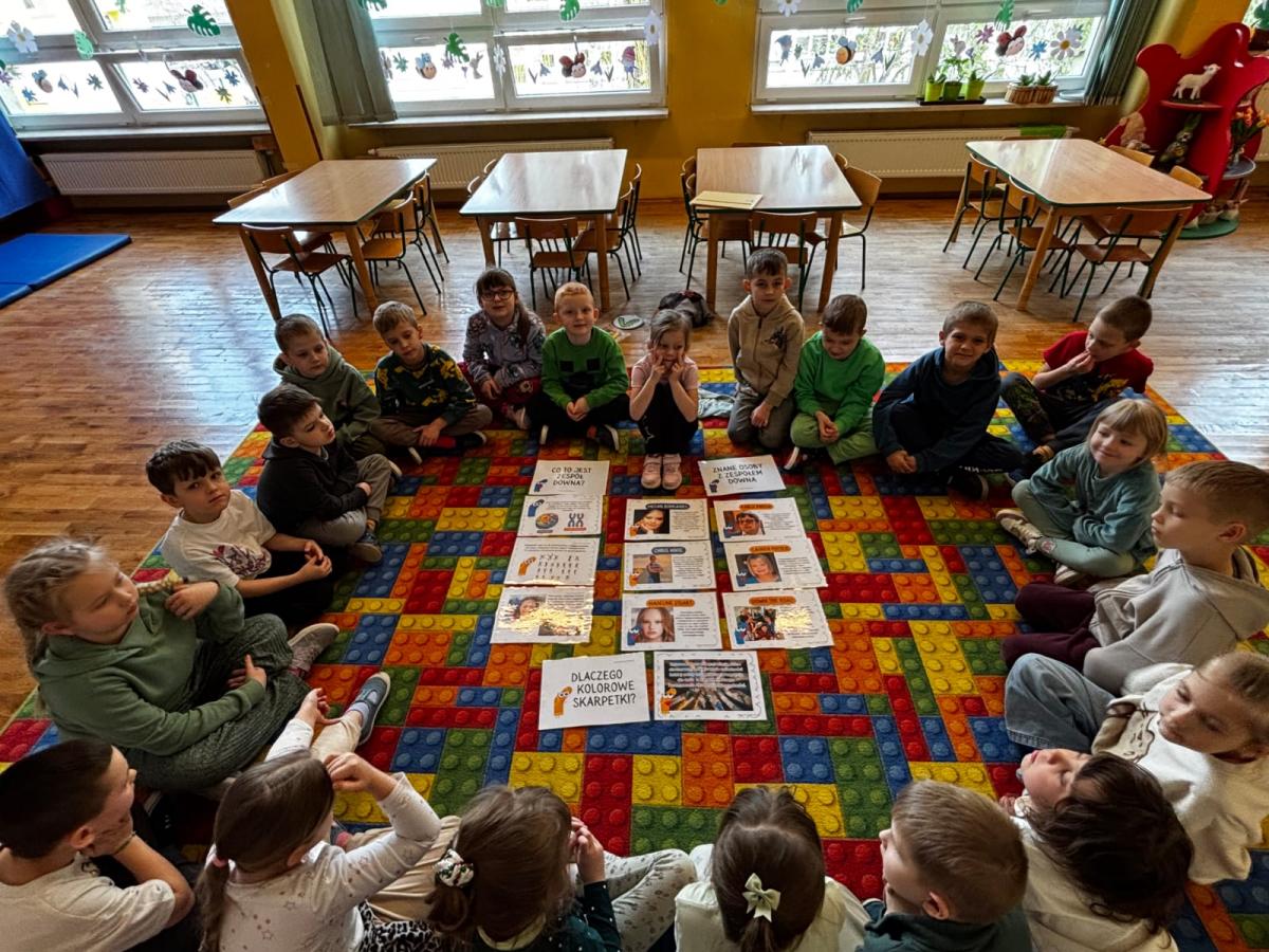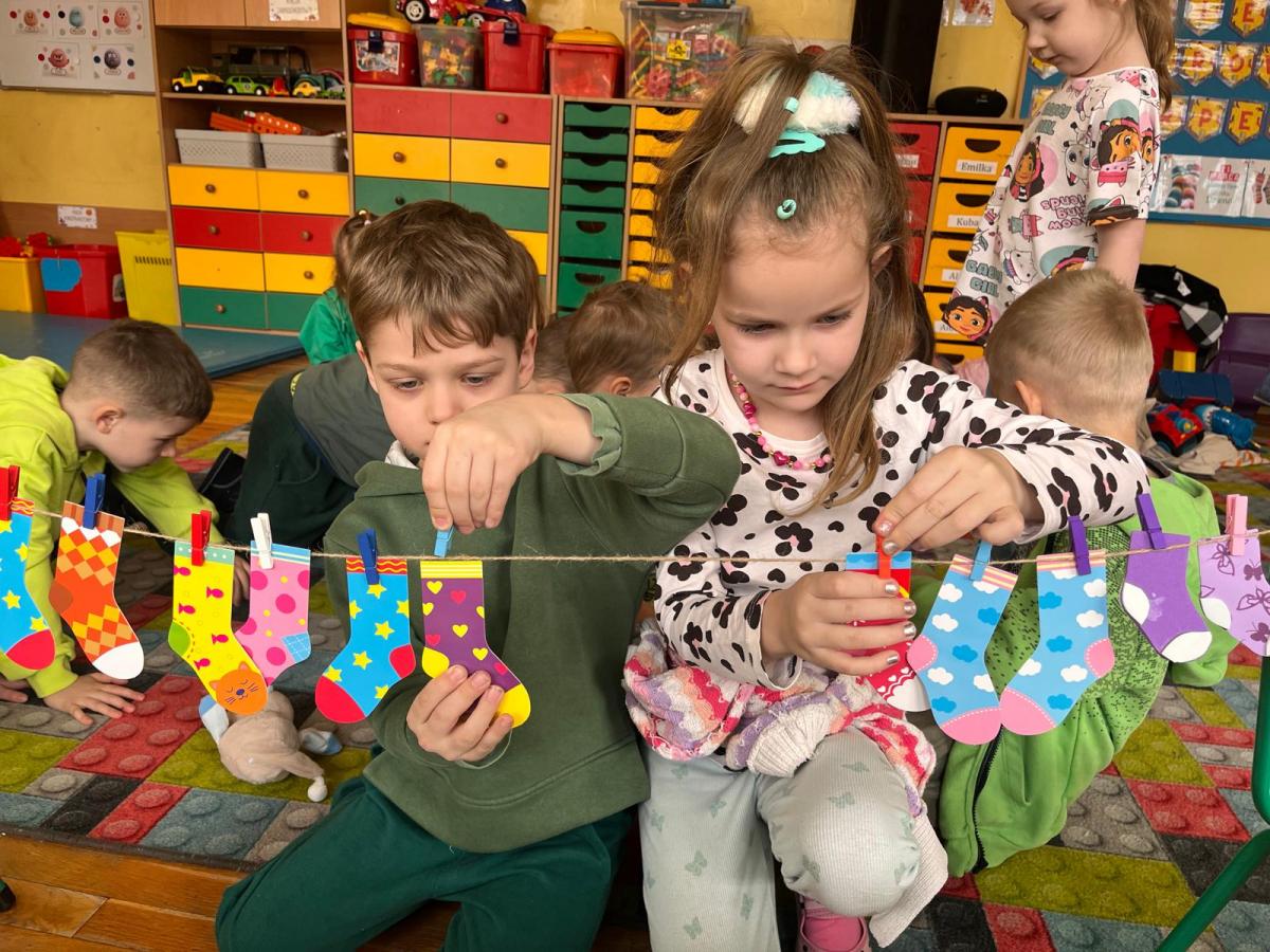 Jak co roku, nasze przedszkolaki czynnie włączyły się w obchody Dnia Kolorowej Skarpetki. Data 21 marca nie jest przypadkowa – nawiązuje do dodatkowego, trzeciego chromosomu w 21. parze, który powoduje zespół Downa. Kolorowe skarpetki stały się globalnym symbolem tego dnia. Ich różnorodne wzory i odcienie podkreślają, że każdy z nas jest wyjątkowy. Poprzez obchody Dnia Kolorowej  Skarpetki zwiększaliśmy świadomość dzieci na temat życia osób z Zespołem Downa. Łamaliśmy stereotypy, promując postawy otwartości i szacunku. Okazywaliśmy wsparcie rodzin poprzez pokazanie, że osoby z trisomią 21 mogą prowadzić satysfakcjonujące życie. Każda grupa zaprojektowała swoje skarpetki, które można oglądać na tablicach.