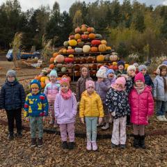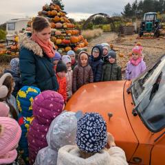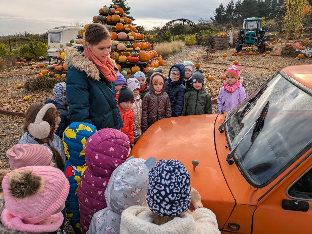 Ponadto przedszkolaki mogły zobaczyć piękne aranżacje, pomysłowe rekwizyty i niesamowite dynie o różnych kształtach i rozmiarach. Podziwiały m.in. bele siana, taczki, powóz, skrzynie, traktor, samochód marki Żuk i Fiat 126p.