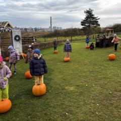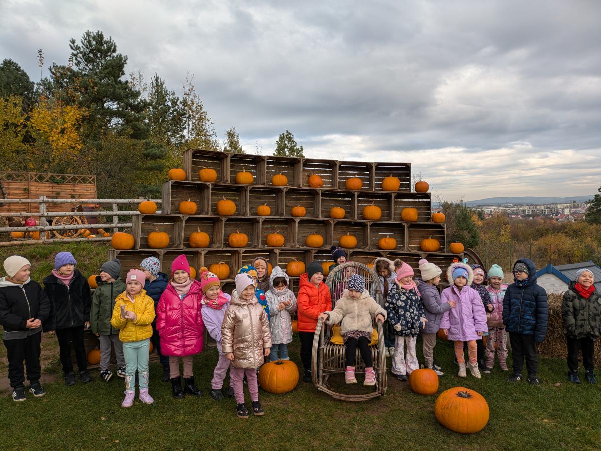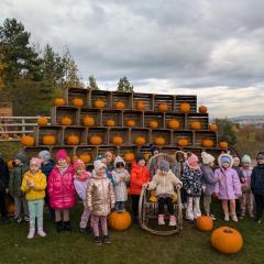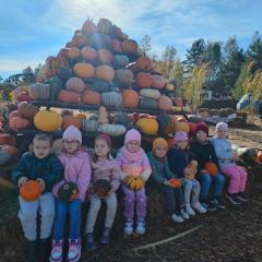 22 i 23 października trzy najstarsze grupy: Motylki, Biedronki i Sówki wybrały się na wycieczkę do Dyniowej Planety - gospodarstwa agroturystycznego mieszczącego się na ul. Piekoszowskiej w Kielcach. Dzieci miały okazję poznać historię dyni od nasiona do owocu, przyjrzeć się ich uprawie oraz podziwiać przeróżne odmiany. Dowiedziały się również, co można z nich przyrządzić.
