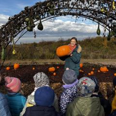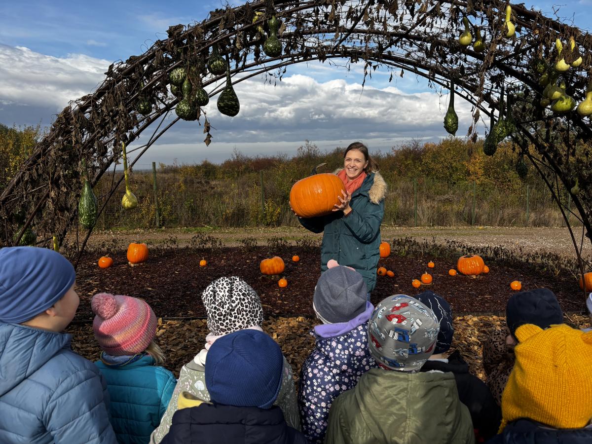 Uczestniczyły również w warsztatach plastycznych, podczas których mogły ozdobić własnoręcznie drewnianą dynię, z której powstał magnez lub zawieszka. W otoczeniu kolorowych dyń i jesiennych dekoracji dzieci bawiły się, uczyły o przyrodzie i pozowały do pamiątkowych zdjęć. To był dzień pełen radości, który na długo pozostanie w ich pamięci.