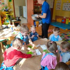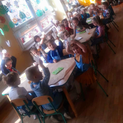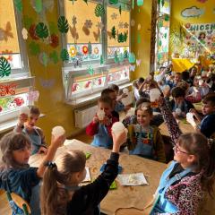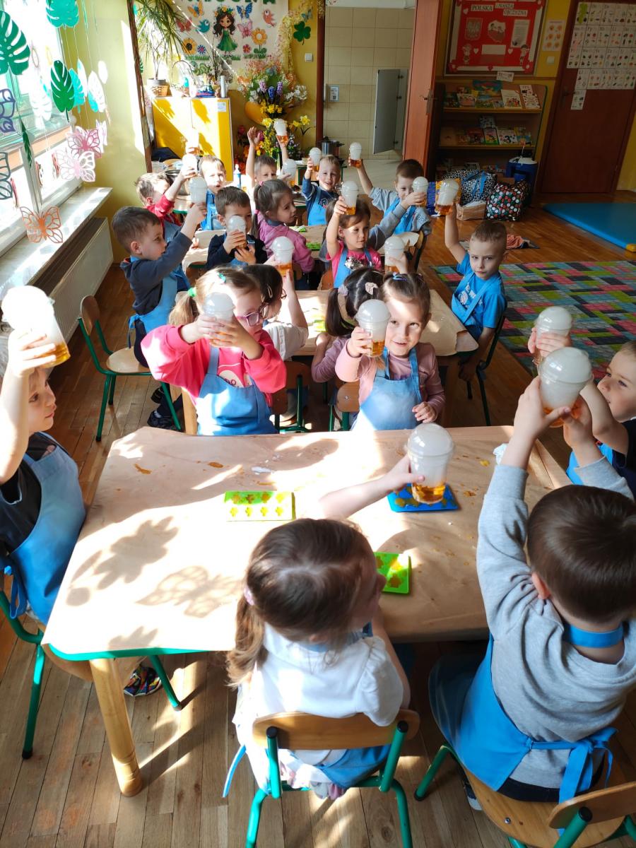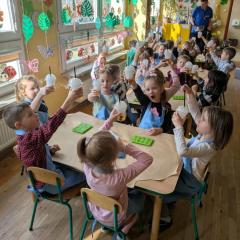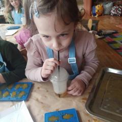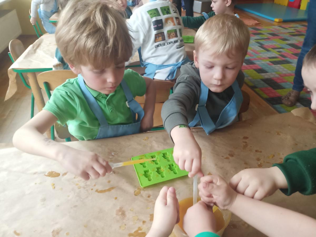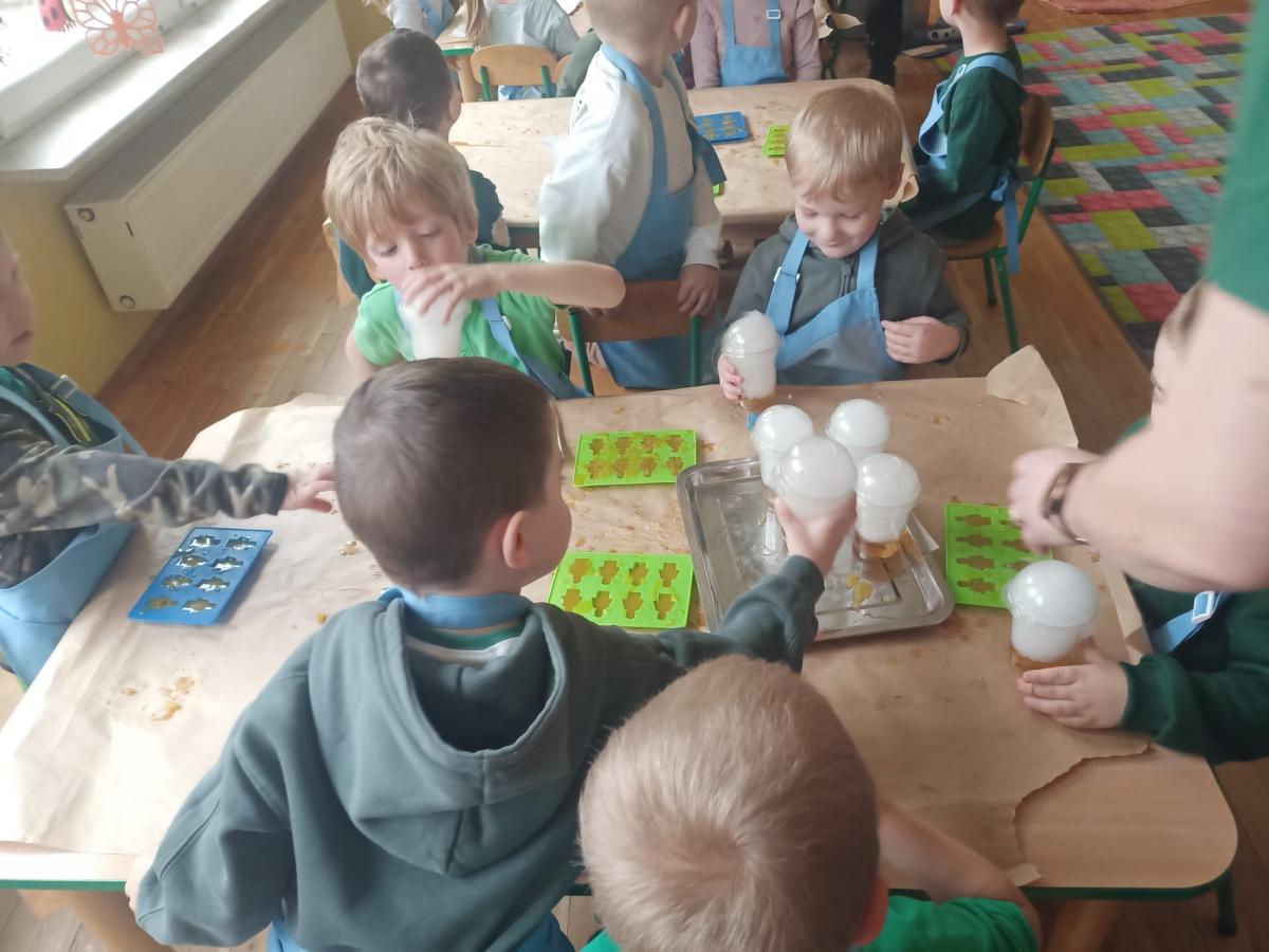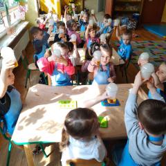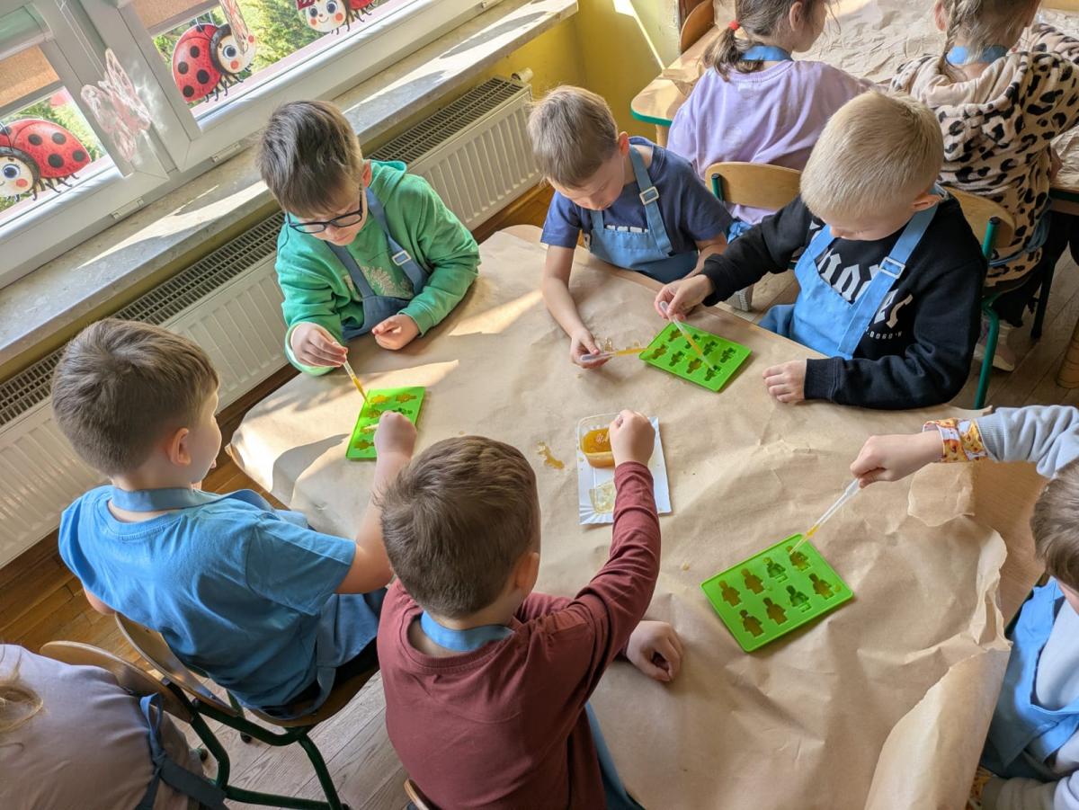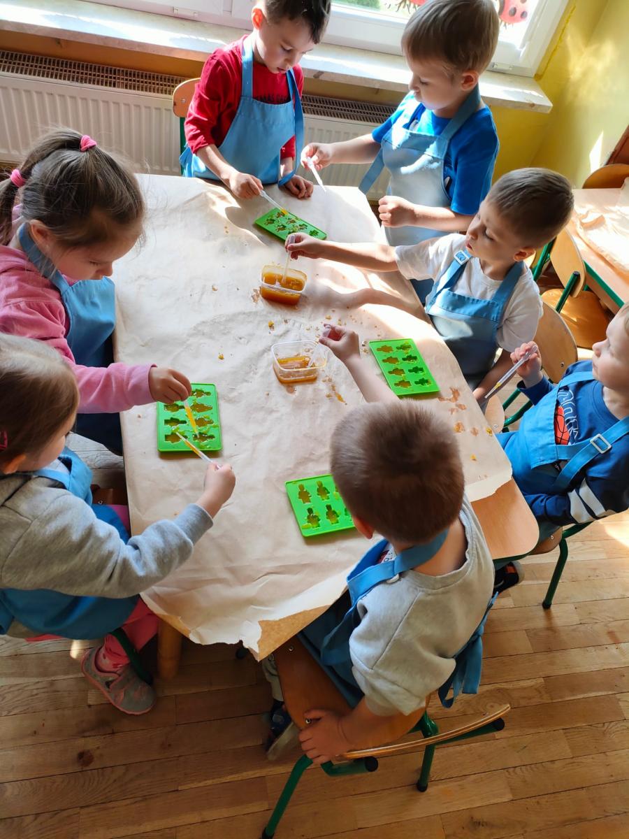 Wszystkie grupy samodzielnie przygotowały zdrowe żelki lego, które popiły dymiącym soczkiem jabłkowym.