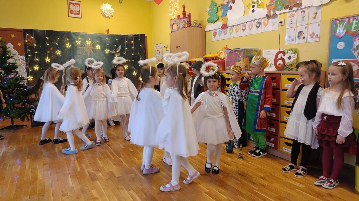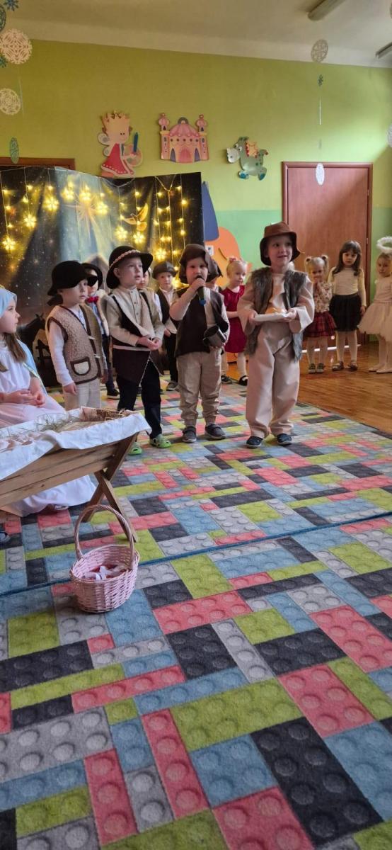 Dzieci z dużym zaangażowaniem odgrywały swoje role i przeżywały magię Świąt Bożego Narodzenia. Jak powszechnie wiadomo, Święta Bożego Narodzenia są najbardziej rodzinnymi i ciepłymi świętami, pozwalającymi poczuć serdeczność i miłość wszystkich wokół. Wszyscy, zarówno dzieci jak i dorośli z niecierpliwością oczekują jego nadejścia. W przedszkolu okres poprzedzający ten magiczny czas jest niezwykle pracowity. Dzieci z wielkim zaangażowaniem i zapałem przygotowywały jasełka.