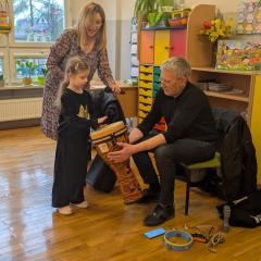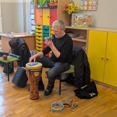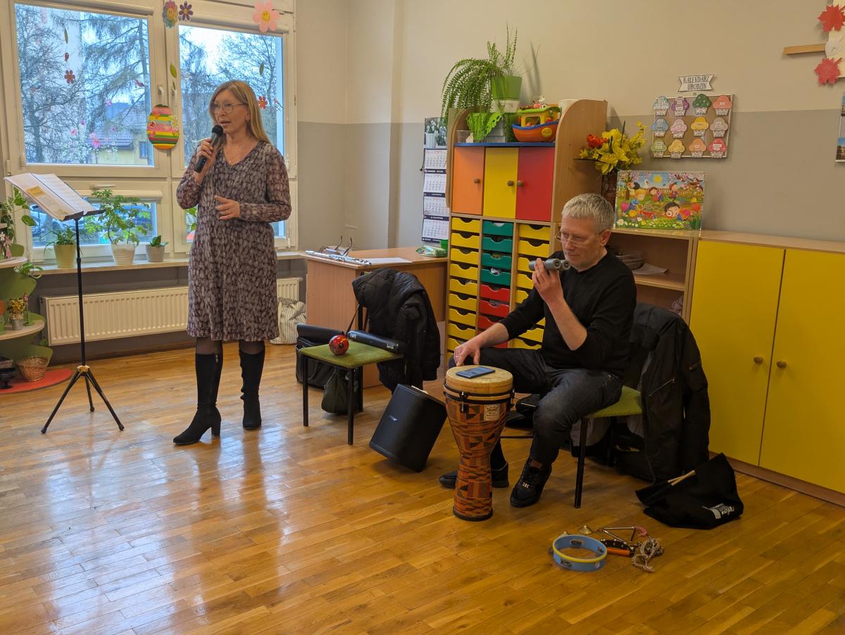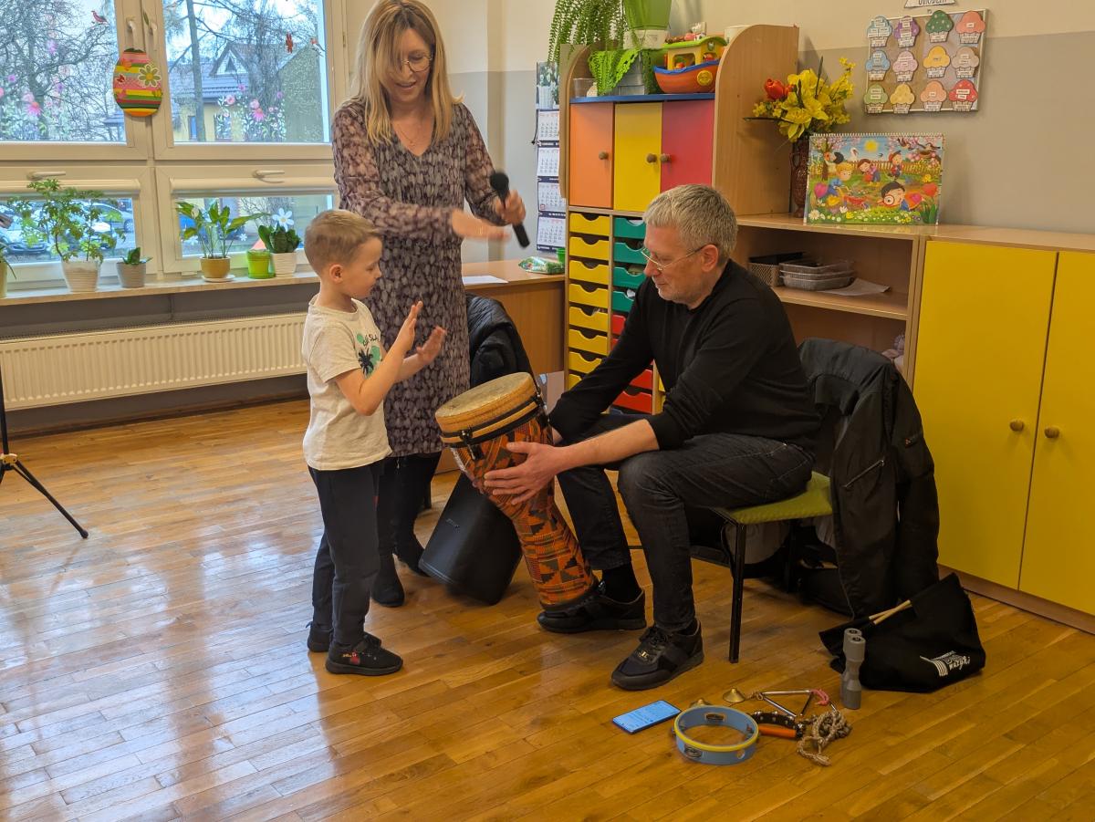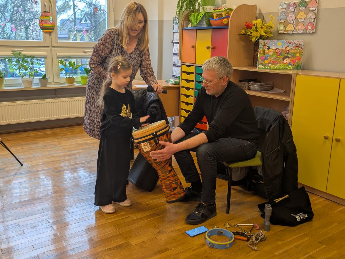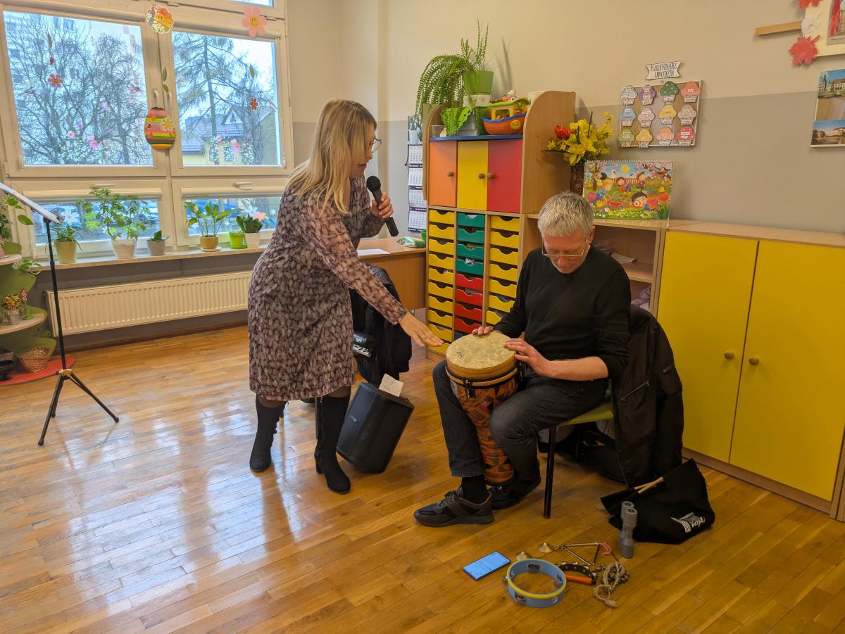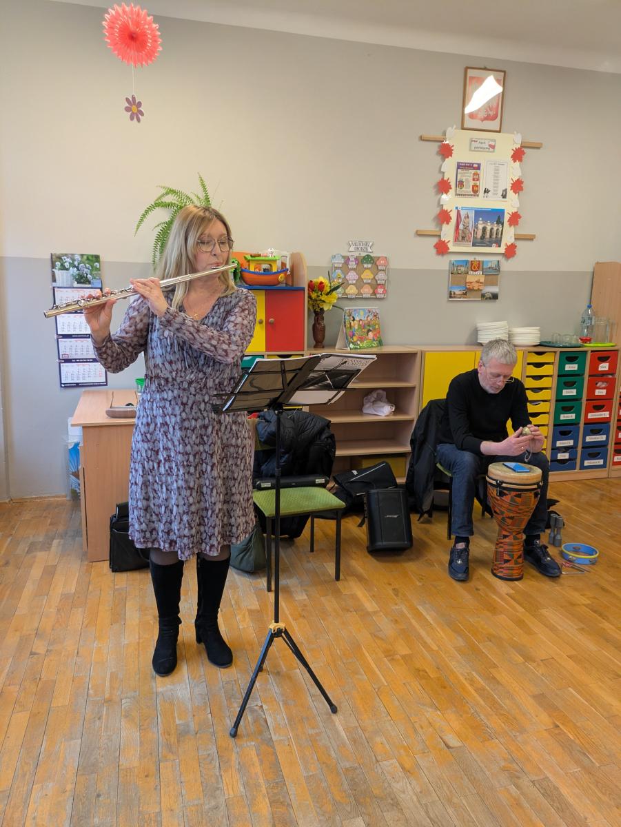 Podczas spotkania przedszkolaki miały okazję poznać bliżej instrumenty dęte i perkusyjne: flet poprzeczny oraz djembę. Muzycy zaprezentowali ich brzmienie, opowiedzieli o budowie instrumentów oraz pokazali, w jaki sposób wydobywa się z nich dźwięk. Dzieci z zainteresowaniem słuchały wykonywanych utworów, a także chętnie brały udział w muzycznych zabawach. Koncert był nie tylko wspaniałą lekcją muzyki, ale również inspirującym spotkaniem ze światem sztuki.